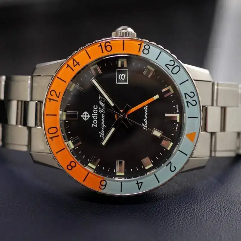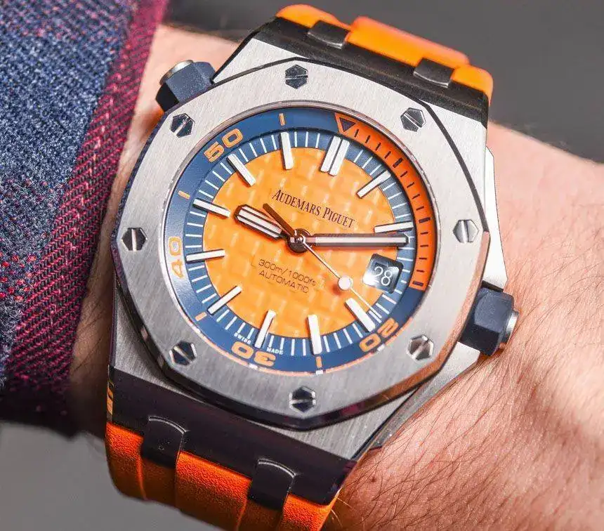 Yo creo que esos colores a todos nos recuerdan a Gulf y a Tag Heuer. Pero acordaros de la primera imagen, una escafandra... es un diver seguro. Quizás bronce, eso no lo sé, pero un diver seguro. Y no tengo ni idea, porque no entiendo mucho de esto, de si un reloj de este tipo tiene suficiente entidad como para que Crepas se fije y haga un proyecto nuevo, pero me inclinaría más por algo tipo Bulova oceanographer devil. O un Audemars piguet royal oak. O algo de ese estilo. Lo que me confunde es el color naranja, cuando ellos mencionan en letras "negro" y "azul"