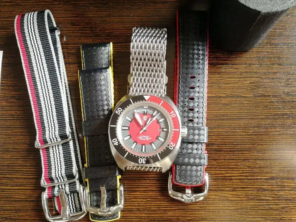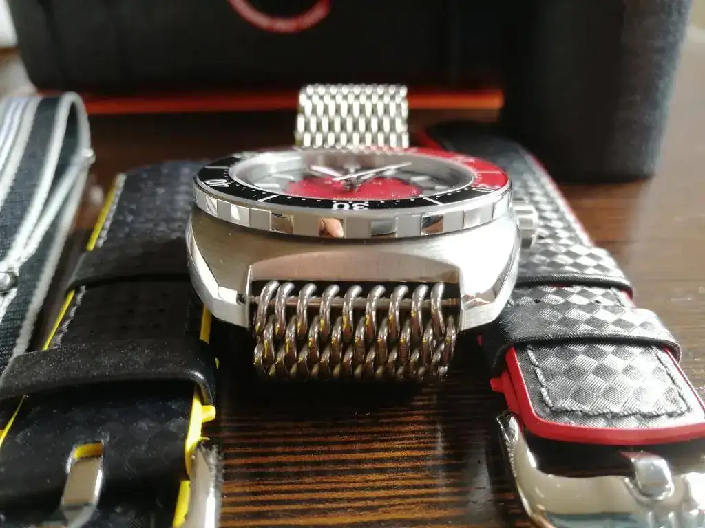 Brazalete : Correa de Caucho Hirsch "Ayrton" amarilla, roja y correa tipo Nato y Milanesa Crepas