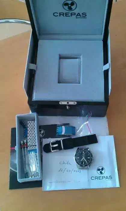 Se entrega con su dotación original, tal y como lo entregó Crepas en Febrero del presente año, con todas sus cajas y documentación. El armis de acero con los dos cierres diferentes y la correa de nylon están sin estrenar (con los plásticos).