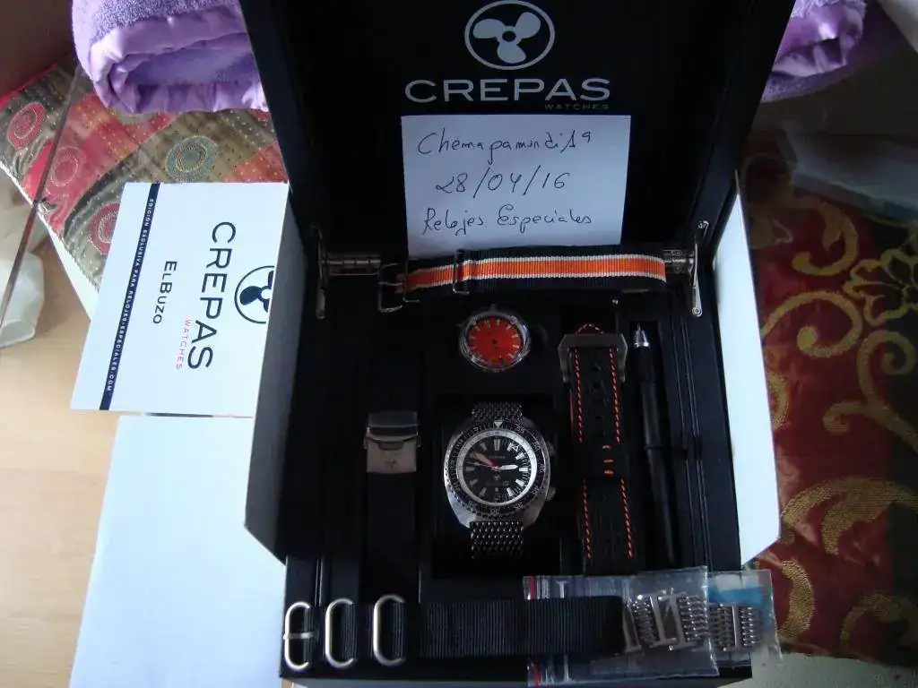 HOLA A TODOS, POR NECESIDADES DEL GUION Y SIN TENERLO PLANEADO SACO A LA VENTA MI EJEMPLAR DE UNO DE LOS RELOJES ICONOS DE ESTE MARAVILLOSO FORO. SE TRATA DE EL BUZO EL CUAL SE ENCUENTRA EN MUY BUENAS CONDICIONES SIENDO ÚNICAMENTE RESEÑABLE ALGUNOS MICRO PELILLOS EN EL LATERAL DE LA CAJA (EL QUE NO TIENE LAS CORONAS) PERO QUE PARA VERLOS HAY QUE PONERLO A CONTRALUZ Y FIJARSE MUCHO (DE HECHO EN LA FOTOGRAFÍA ADJUNTO SON INAPRECIABLES). LO ENTREGO CON LA DOTACIÓN COMPLETA, ES DECIR, CON LA CORREA DE CAUCHO, MILANESA TIENE ALGÚN MICRO PELILLO EN EL CIERRE (MIRAR FOTOS), 2 NATOS UNA LA NEGRA Y NARANJA Y OTRA TOTALMENTE NEGRA Y TAMBIÉN LA CORREA DE PIEL DE TIBURÓN ESPECIFICA PARA ESTE MODELO. TAMBIÉN ENTREGO LA SEGUNDA ESFERA DE COLOR NARANJA CON SUS AGUJAS POR SI SU NUEVO PROPIETARIO QUISIESE CAMBIARLE EL LOOK.