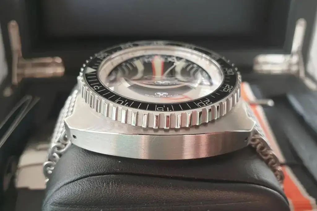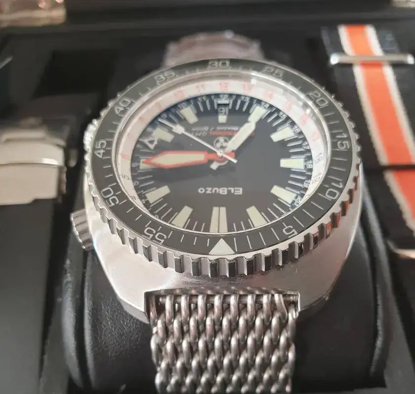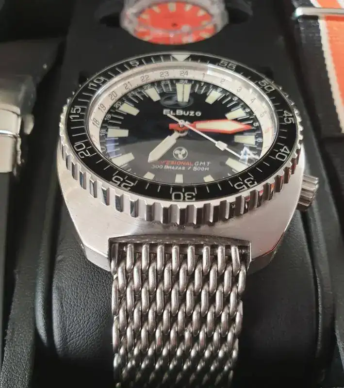 Buenas a todos. Pues en esta ocasión, sale uno que no necesita presentación alguna. Considerado ya un icono del foro. Entrando en detalles, el reloj está en magnífico estado, no se aprecian marcas ni golpes por ningún lado,ha sido cuidado con mucho cariño. Y en cuanto a la marcha,va perfecto,sin desfase,al menos siempre que lo he utilizado. En cuanto a la dotación, lleva su milanesa,el caucho(cortado) y una nato. Herramienta para cambio y la segunda esfera,color naranja. No acepto(ni contesto) propuestas de cambio,ya que va destinado a otros menesteres.