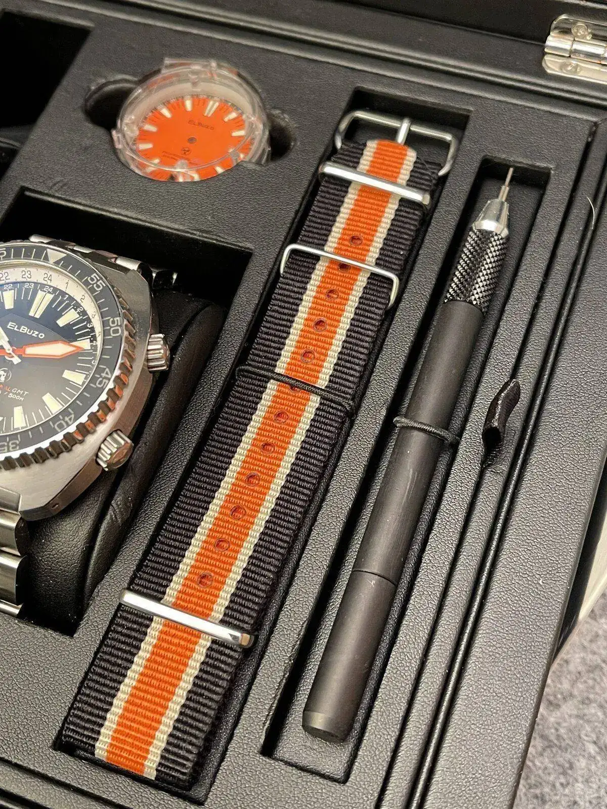 Incluye la esfera naranja de recambio con otras agujas a juego.