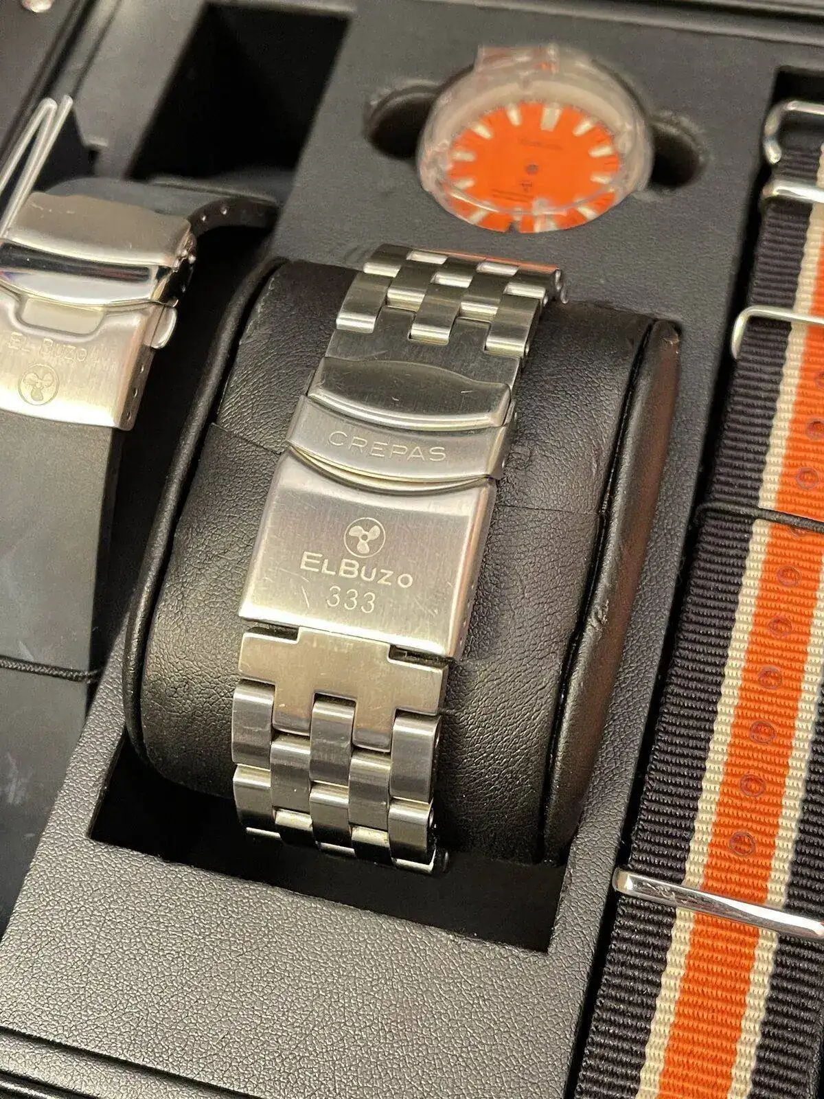 El estuche tiene el mismo problema que las cajas de Omega o similares. Envejece mal. Incluye el destornillador, eslabones sobrantes de recambio, documentación, gamuza y herramienta para el brazalete.