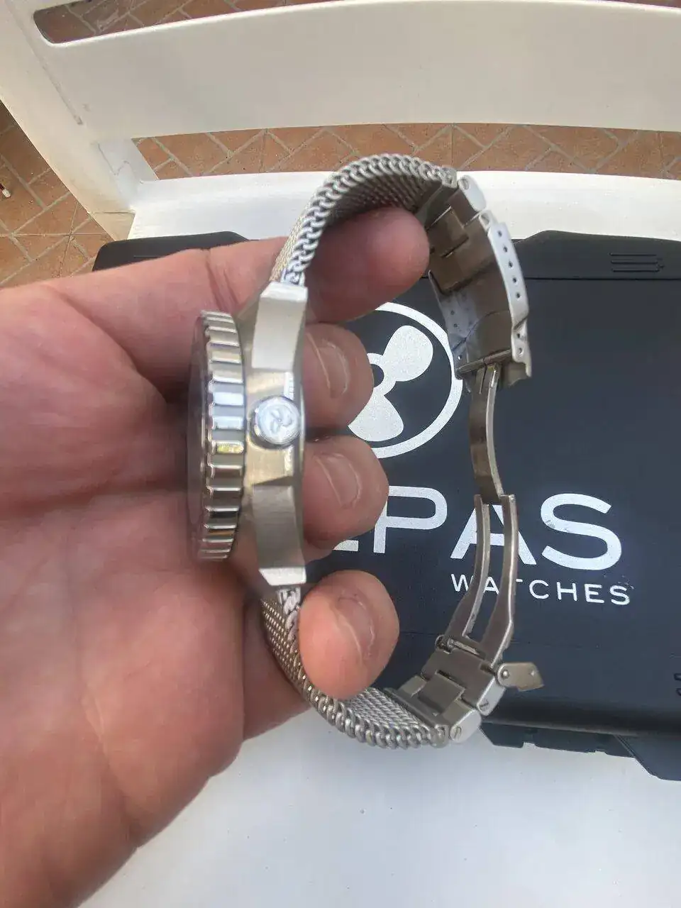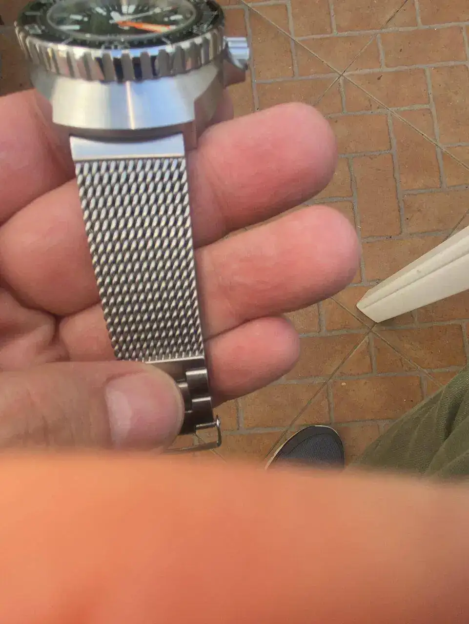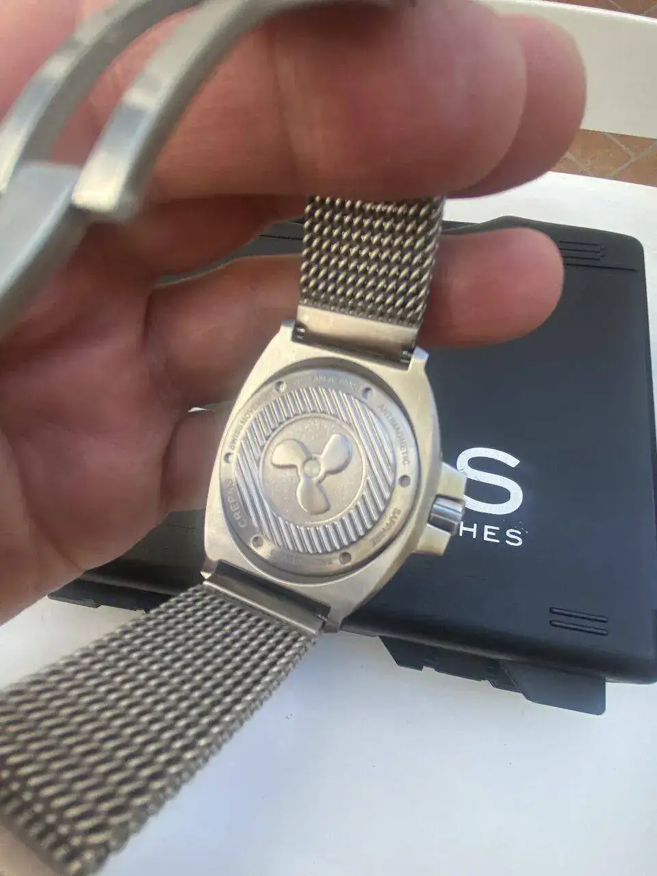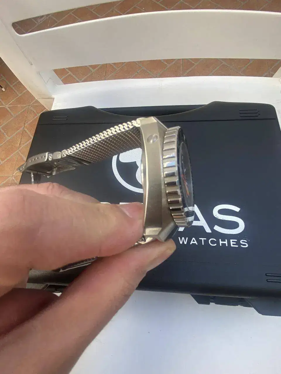 BRAZALETE: Milanesa (completa con eslabones sobrantes), caucho negro de agujeros con hebilla, caucho naranja Bonetto Cinturini con deplo firmado y nato negra.