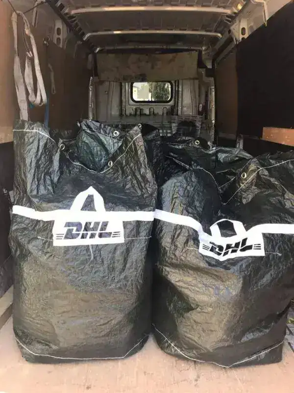 Por la cuenta que le trae tanto a crepas como DHL....no se pierden noVaya tela!!! Todos metidos en una bolsa grande de patatas en el maletero de una furgo. Asi a pelo.!!!.