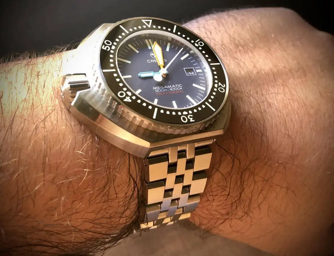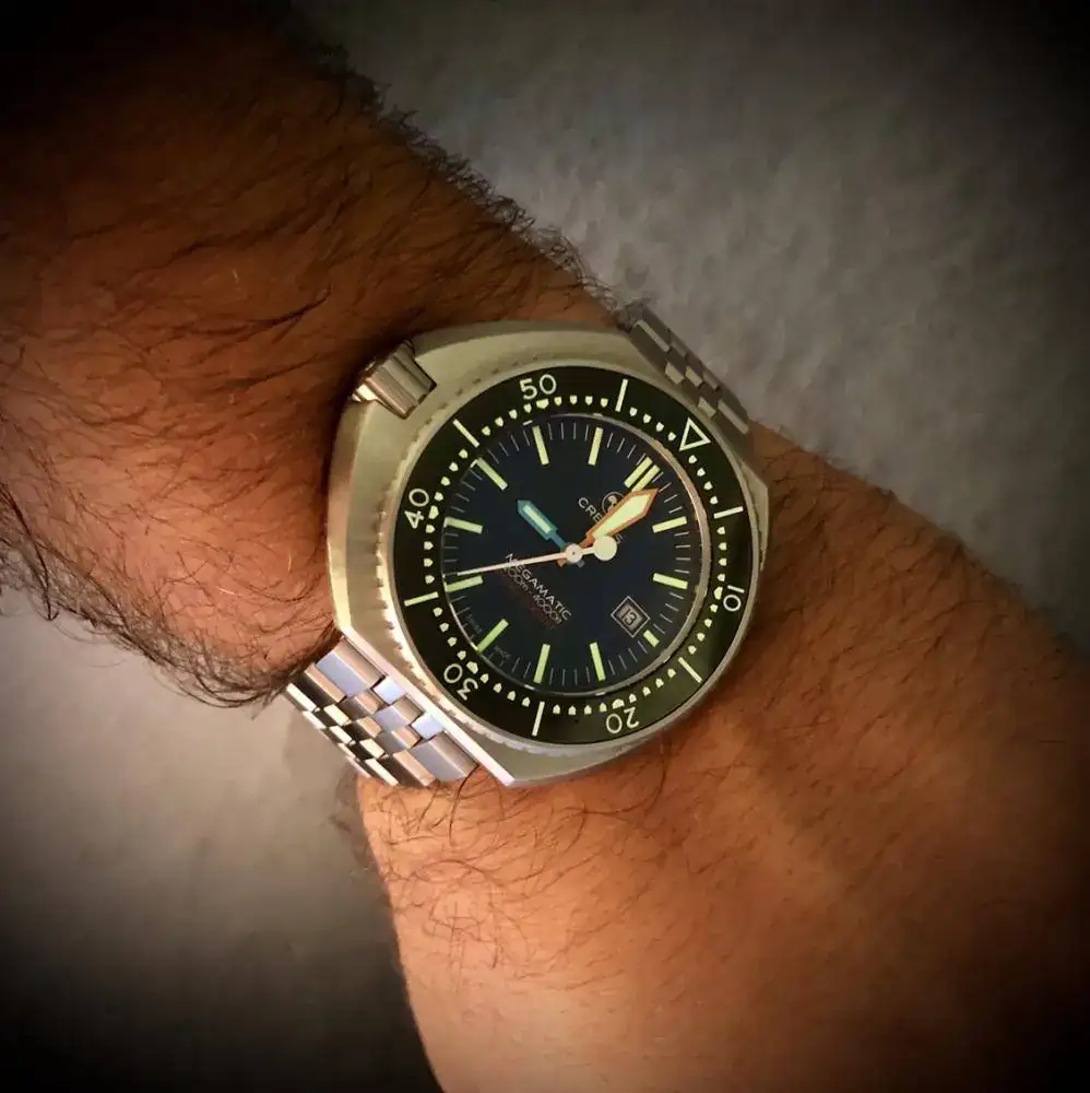 Creo que el reloj omega original no llegó a salir al mercado, se fabricó un prototipo que es el que está en museo, y no sé fabricaron, ni comercializaron más.Me sigo quedando con el color naranja,personalmente es el que mas me gusta,es un reloj con cierto halo misterioso como lo fue en su dia el Omega Megaquartz Seamaster,que se lanzo creo que por los años 60/70, esta gente de Crepas han hecho un bonito homenaje a Omega.