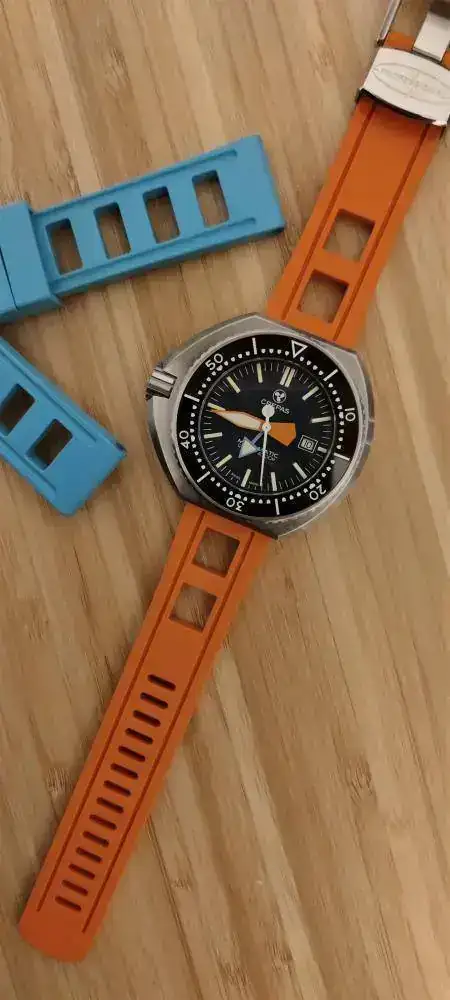Al tratarse de un reloj de esas características tan específicas creo que lo que mejor le sienta son milanesa, armis o el caucho, las correas de cuero o racing emho no van acorde con el espíritu del reloj. Aunque la nato de Kalessin no queda del todo mal.