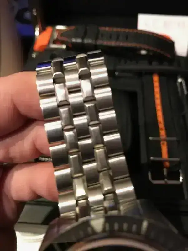 [FONT=Verdana, Tahoma, Helvetica, Arial]Brazalete: Acero, milanesa, nato, cuero tiburón, caucho negra, caucho naranja nueva.[/FONT]