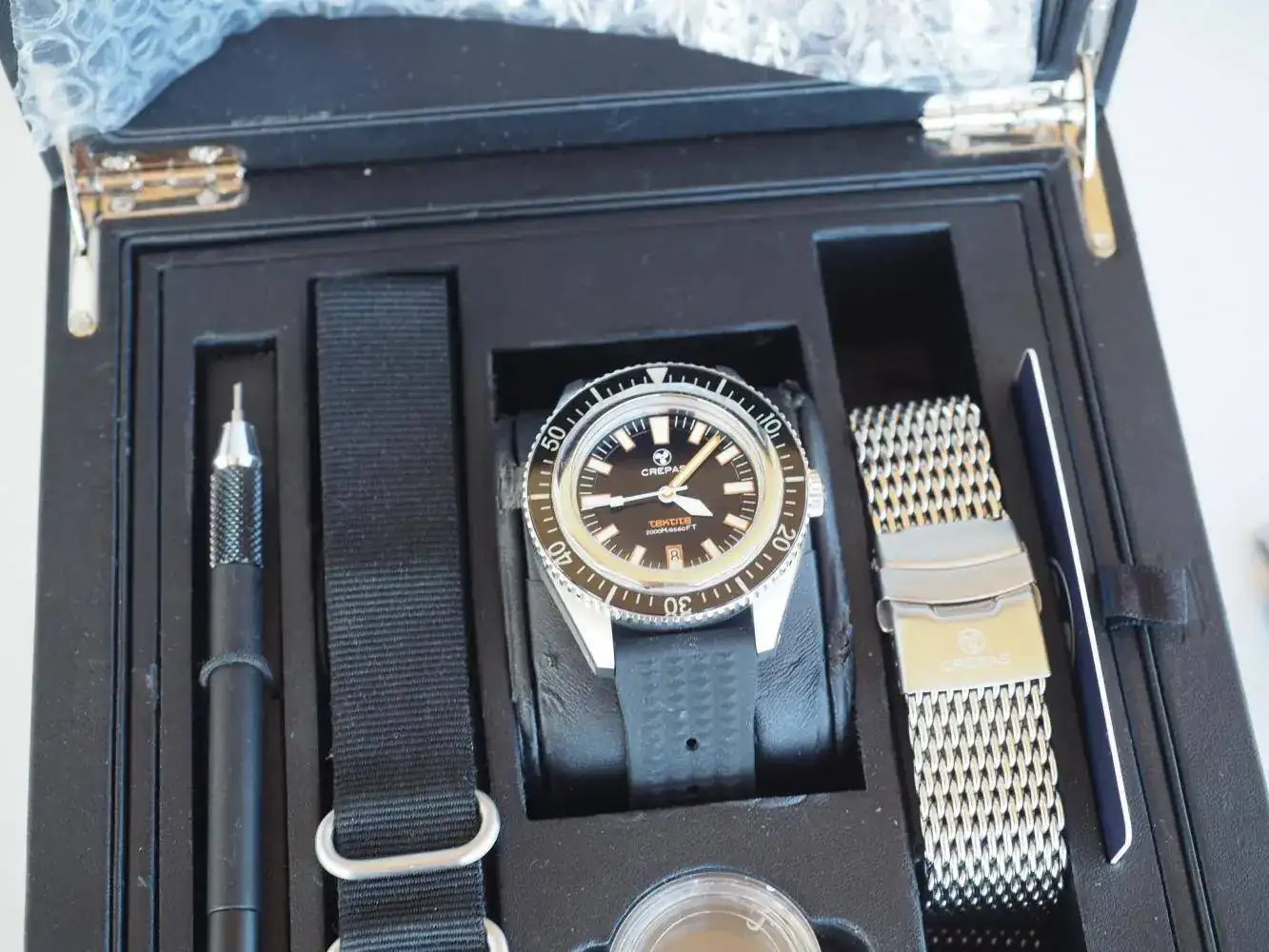 El reloj esta en perfecto efecto estado, algunos micro pelillos en caja, y en la zona de los pasadores de tornillos, trae de dotación caucho original, zulu y una milanesa mejor con diferencia a la que traía, con el cierre original de Crepas, caja herramienta y juego de pasadores de tornillo para lo demás a las fotos me remito.