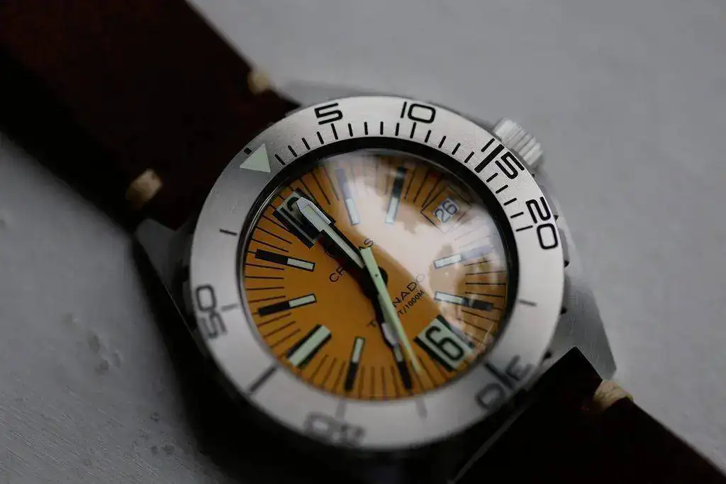 Bueno pues ya llego, aunque algo pequeño paro lo que normalmente gasto, tengo que reconocer que es muy cómodo, se echa de menos el AR y el grabado en la trasera con la hélice de la firma, pero no podía ser, la dotación es perfecta, ya no se veía nada así desde el Tektike o el Cayman, el estuche es cómodo y funcional, no puedo decir más, un apartado que me gusta bastante es el lumen, ya iba siendo hora de que hicieran algo decente en este apartado, bueno ahora unas fotos con distintos pantalones, una cosa que se me pasaba, no recuerdo bien pero creía que la caja con esfera naranja y amarillo era totalmente cepillada o es al revés, alguno que tenga la caja con esfera gris puede confirmarlo? .