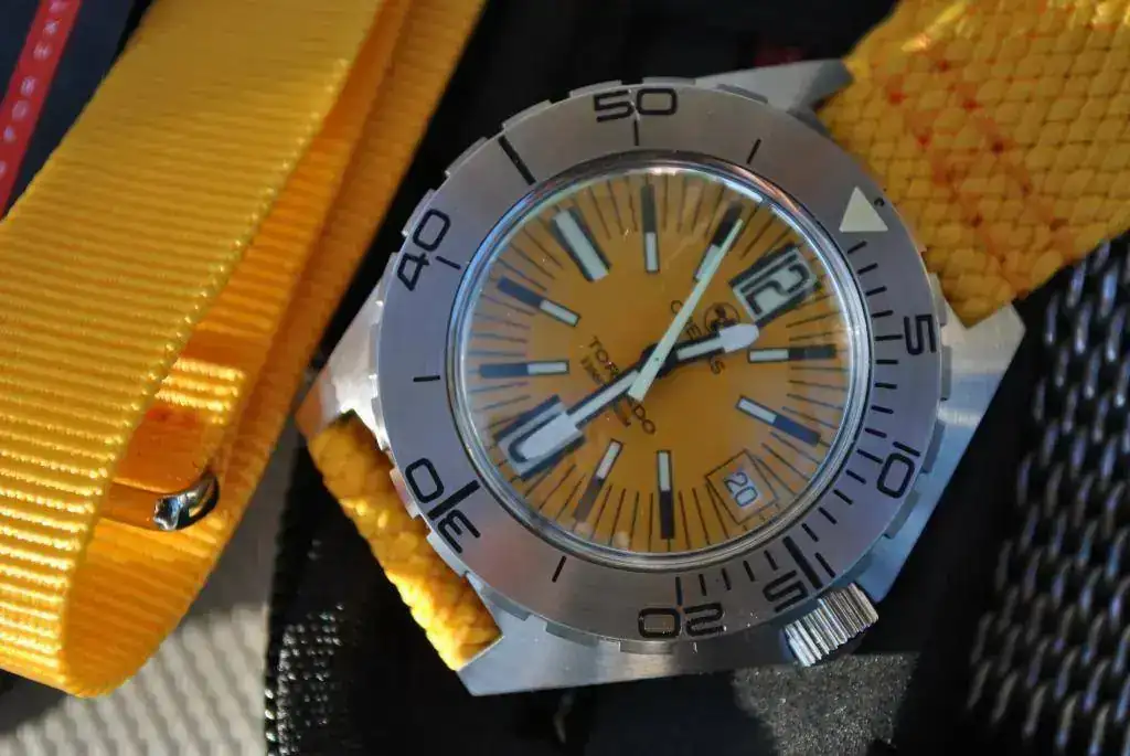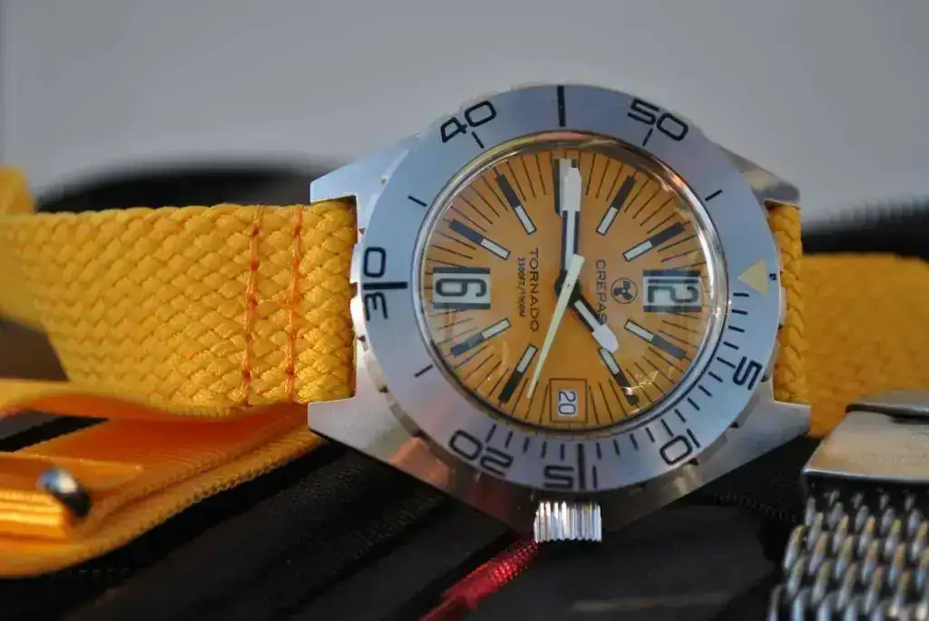 Esta unidad en concréto monta cristal plexi super grueso y super, super dommed. Y dial amarillo. Este dial junto con el naranja son los que más solicitados estan.
