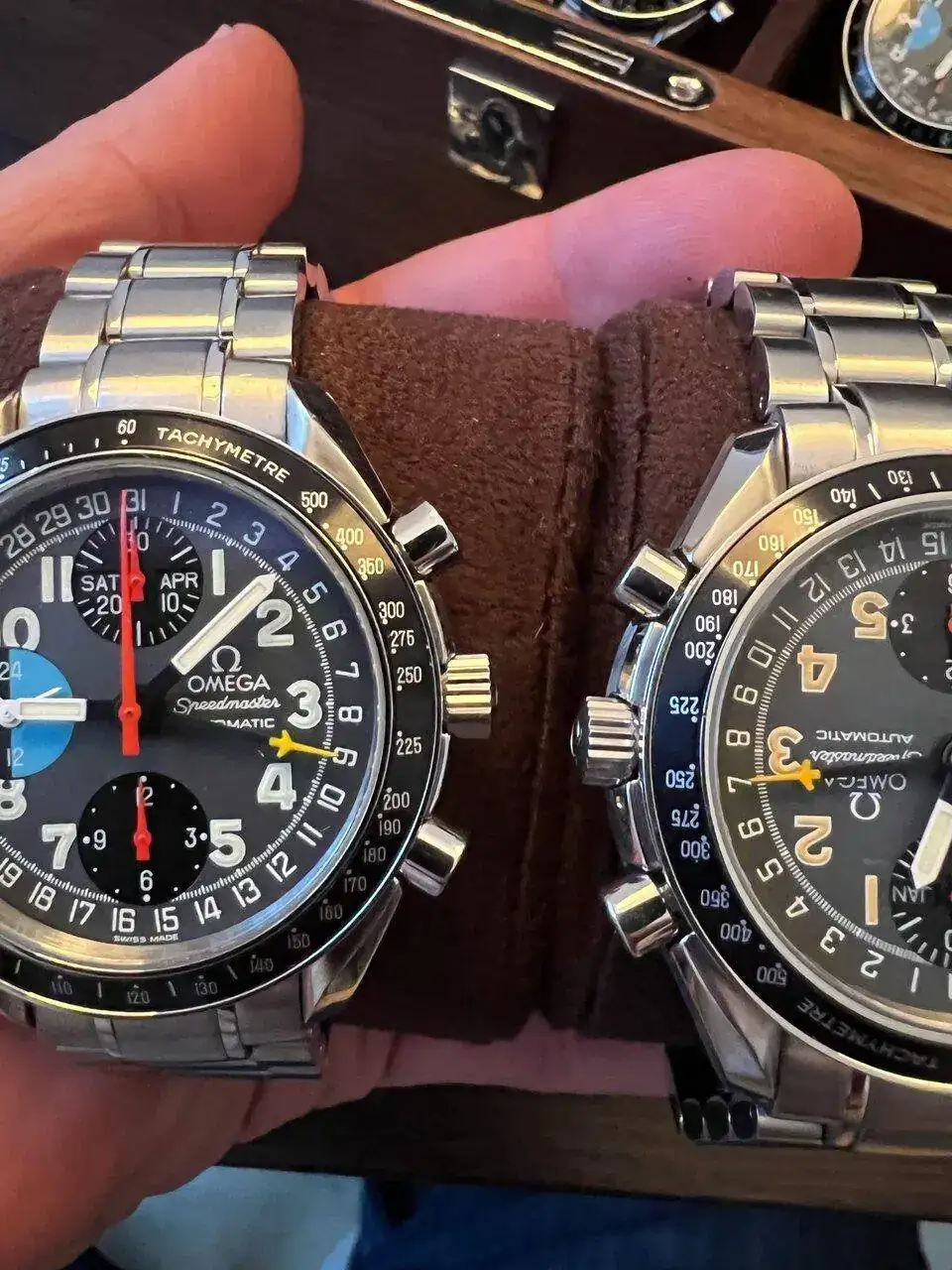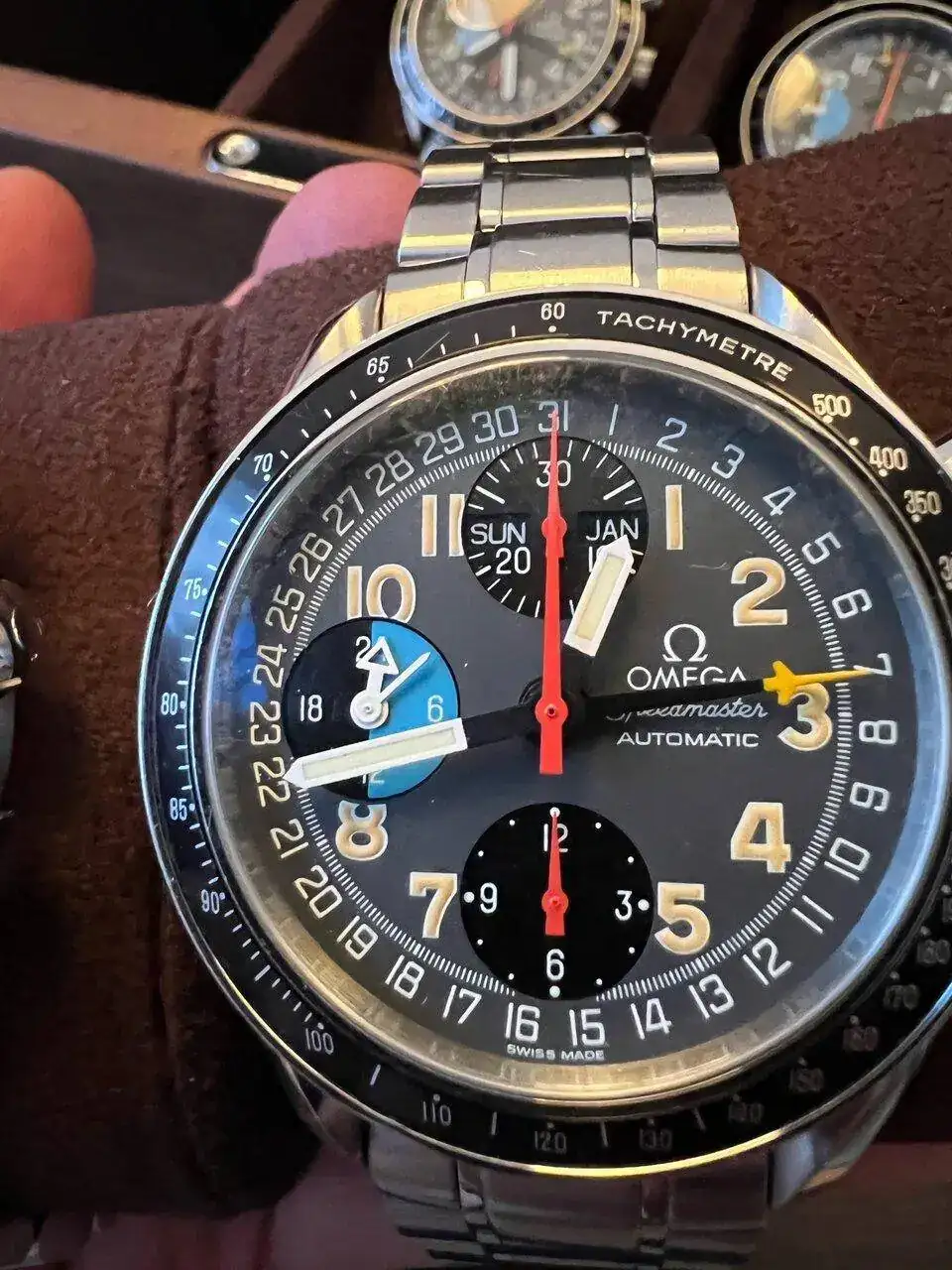 Aunque el post va del modelo del anuncio, aprovechando el tirón de Schumy, Omega saco también otros modelos en 39mm con esferas chillonas en rojo o amarillo así como el racing, pero volvamos al tema principal.