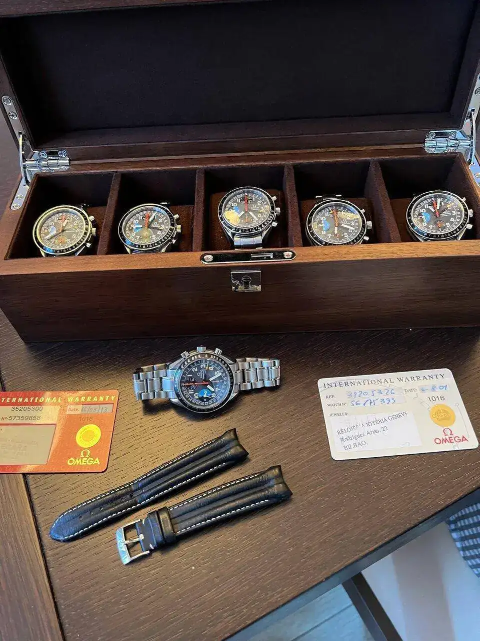Hablamos de una pieza que salió al mercado en 1996 aproximadamente y muchos relojes no conservan la documentación original, por lo que es complicado en el caso de que no conserve la garantía, saber realmente que referencia tienes entre manos. Lo digo porque había anunciantes que ponían que su reloj era la referencia 38205326 (cuero) pero el reloj iba con armis y viceversa con referencias 35205300 que debían montar armis pero llevaban pantalones de piel.