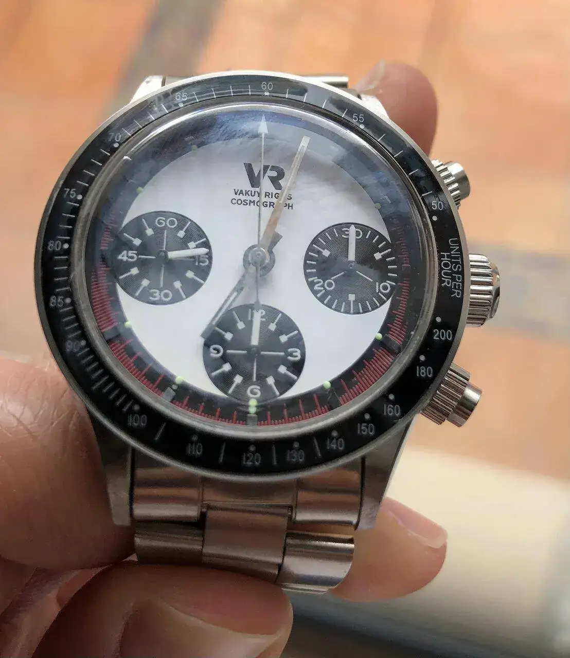 Resulta que siempre limpio mis relojes con papel de cocina y alcohol. Nunca he tenido el más mínimo problema pero este reloj tiene cristal acrílico y el insert del bisel también y se me han quedado blanquecinos, como yo a verlo.