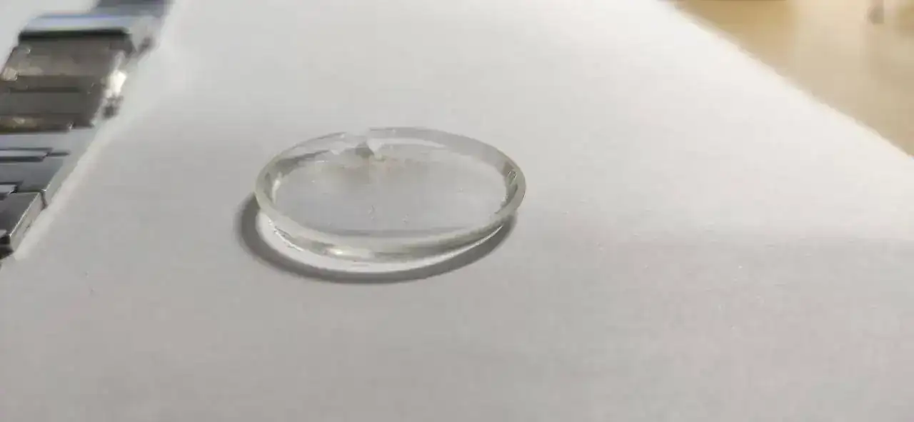 Recientemente me llegó un cristal de 30mm que compré por ebay (adjunto pantallazo del cristal). El problema es que el cristal era demasiado recto y no permitia cerrar el bisel (los 30mm si que quedaban perfectos). El original se minimiza bruscamente en los laterales, de modo que si permite que el bisel entre.