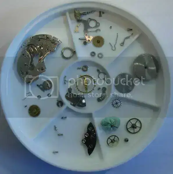 En la siguiente imagen vemos solo las piezas correspondientes a la parte que es común con cualquier reloj.