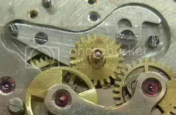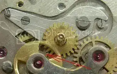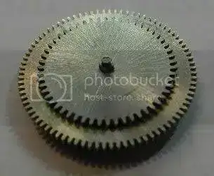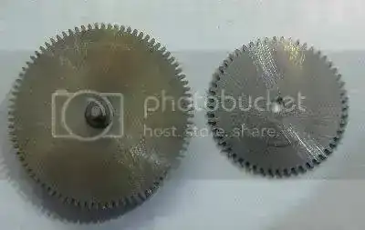 De izquierda a derecha son , rueda de escape, rueda de segundos, rueda primera y rueda de centro.