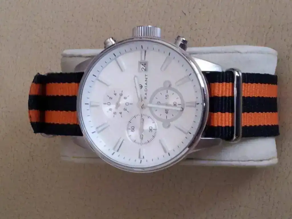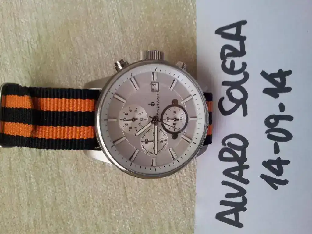 Vendo cronógrafo RADIANT. Con caja y papeles. Año 2011. Magnífico estado. Caja 42 mm sin contar corona. Correa nato y original de cuero. Pila recién puesta. Cualquier cosa por mensaje privado. 90 euros, incluído envío por correo certificado.