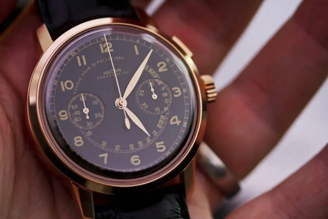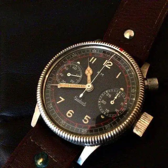 Pero si puedo decir lo que me atrae de ellos. La limpieza de lineas de sus cajas y asas, los diseños y disposición de esferas, agujas e indices, la ausencia de bisel externo, esos pulsadores tan característicos y, como no, los calibres mecánicos de carga manual con rueda de pilares. Relojes herramienta pero manteniendo cierto tono elegante, diría.