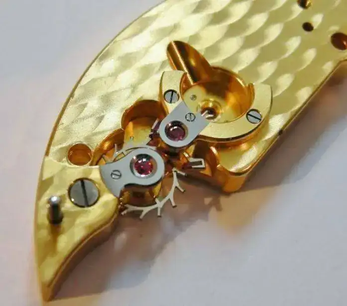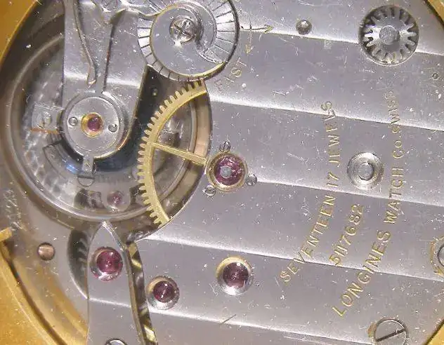 Vean todos los ejes equipados con Chatones y Rubíes. los ejes del volante, áncora y rueda de escape, con piedra y contrapiedra.