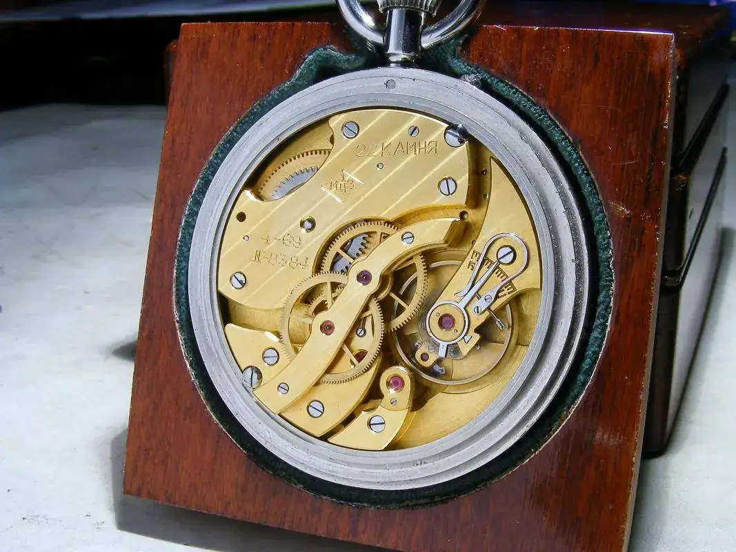 En su esfera, además de la hora y los segundos, la mayor parte de las veces aparece también la reserva de marcha, que rara vez superaba las 56 horas.El equipo completo de uno de estos relojes sería el siguiente, funda y correa de transporte, caja transporte, caja del cronómetro, lo vemos todo ello en este ejemplar Poljot.