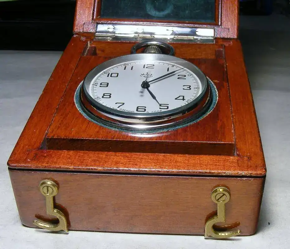 Amigos, después de ver en otros hilos varios Cronómetros de Marina en su versión portátiles con maquinaria híbrida, eléctricos o electrónicos y finalmente los "Master" o maestros que sin ser portátiles, permitían controlar simultáneamente el horario GMT y la hora oficial de todo un buque. (Hora Local, según posición), vamos a ver ahora ya que varios amigos han preguntado por los Cronómetros Marinos mecánicos y aunque vimos tímidamente uno de ellos en su momento, hoy veremos varios de ellos, de origen Soviético, Poljot, de Origen Alemán, Glashutte, Zenith, Longines, Suizos y posiblemente uno de los más significativo de ellos, de origen Norte Americano, el Hamilton 21 y el Waltham.