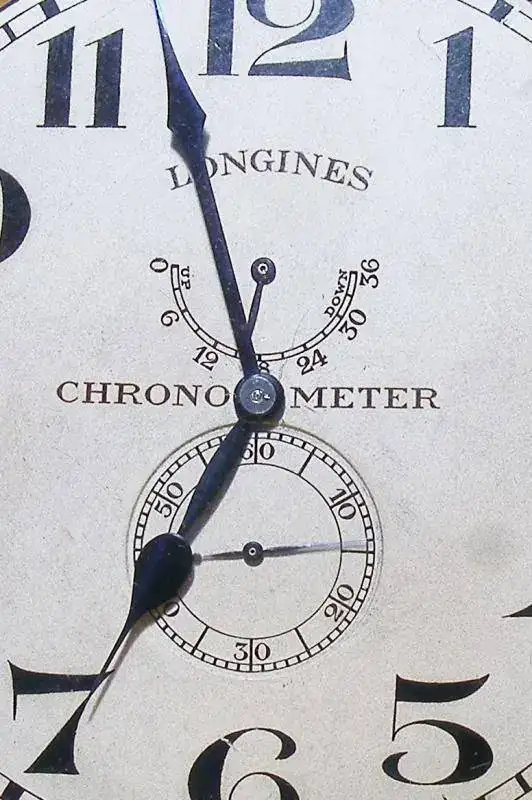 Habitual también en el mar Longines dispuso de grandes Relojes Marinos, este, de los años 30, es uno de ellos, un 36 horas marcha, con indicador de la reserva.
