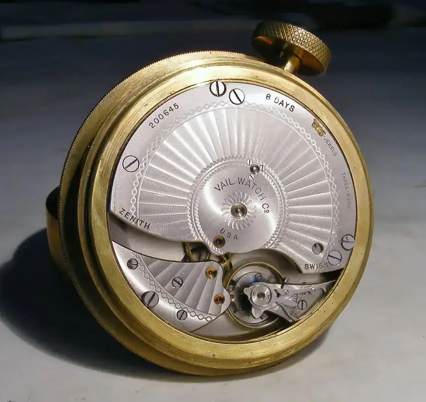Veremos seguidamente otro Zenith, este con doble firma, ya que para el suministro Urgente en el año 1941, la Zenith, usando mecanismos de la Vail Watch Co. de Chicago que fabricó relojes para Automóviles desde principios del siglo XX.Para adaptar estos relojes a la normativa de la Marina, la Zenith los modificó, cambiando, Volante, espiral, áncora y raqueta, aumentando el número de Rubíes de 6 hasta 15 y ajustando los mecanismos con 3 ajustes.
