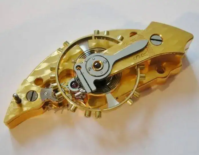 Presenta, complejos mecanismos internos además de los mencionados, uno de ellos y se aprecia en este esquema, es el sistema que permite, mediante un complejo planetario de piñones, ver como trabaja el indicador de la reserva de marcha.