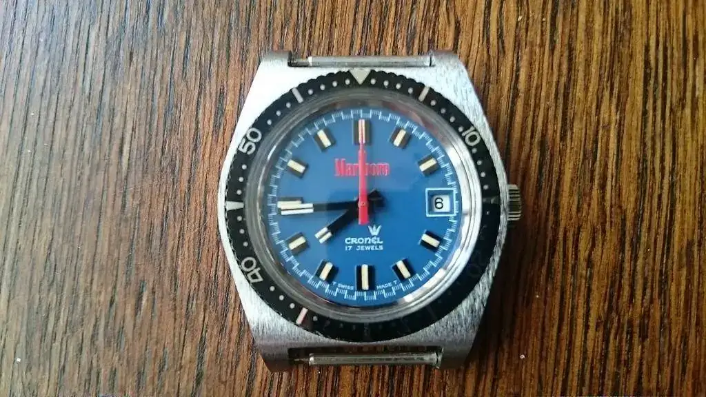 Se vende curioso reloj vintage tipo diver marca Cronel con propaganda marlboro estado nos.