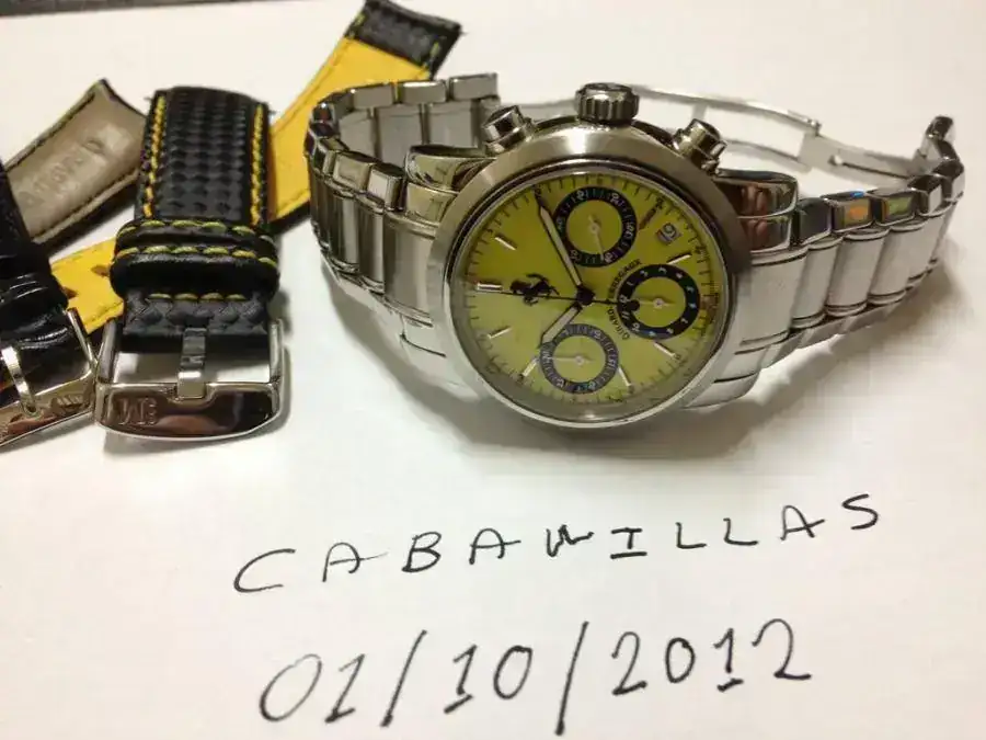 Además,te mando una correa negra original de GP,con su hebilla original,usada,pero con muuuuucha vida por delante...y una correa waterproof negra con pespuntes amarillas que le queda de coña!