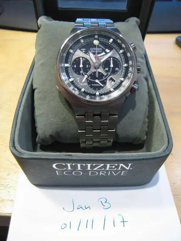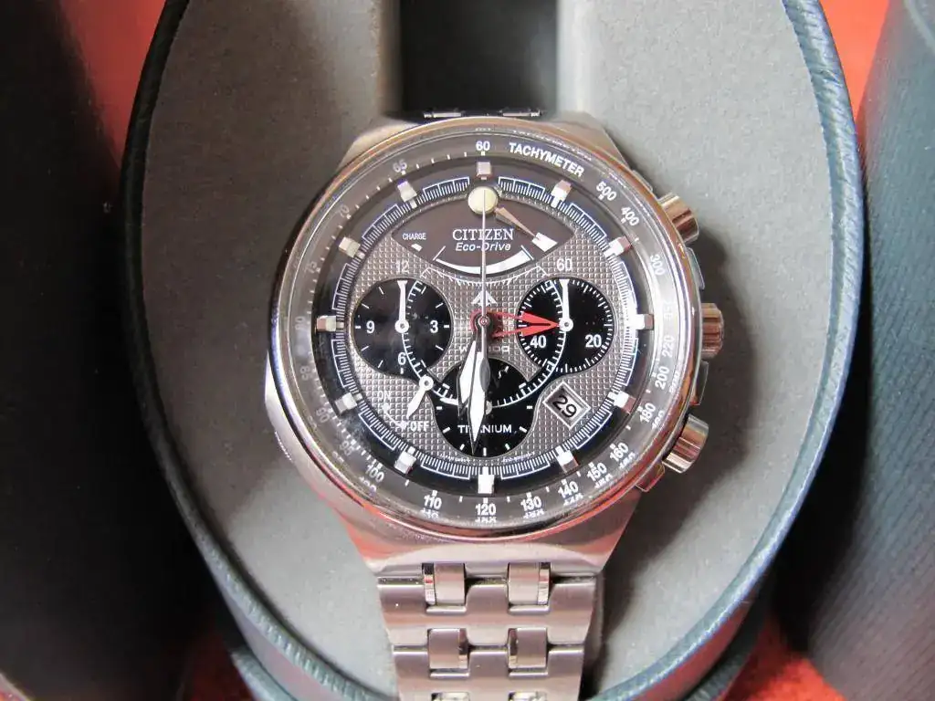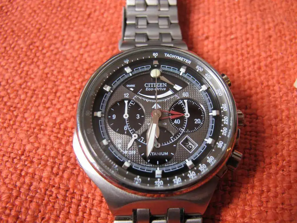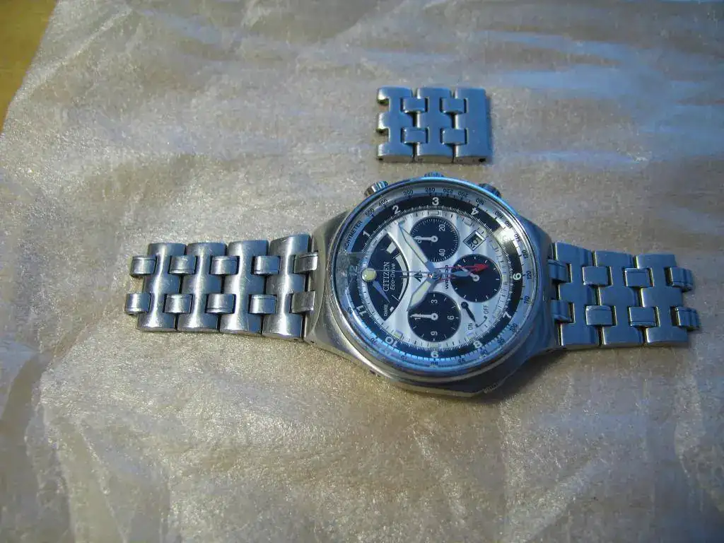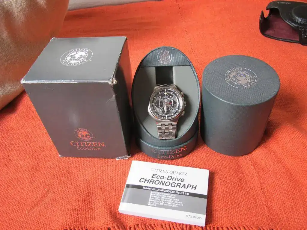Vendo este Citizen con el famoso calibre 2100 que incluye un crono con indicación de 1/5 segundo y puesta a cero instantánea (como si fuera un crono mecánico). Además tiene las funciones de alarma y de indicación de reserva de carga.