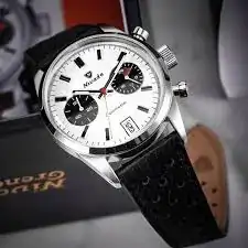 Están reeditando francamente bien los actuales dueños de Nivada... Al pasar la fecha a las 6, a mí me ha recordado más al Chronomaster, que tuvo una configuración panda y creo que también una con fechador a las 6 (no sé si ambas cosas a la vez