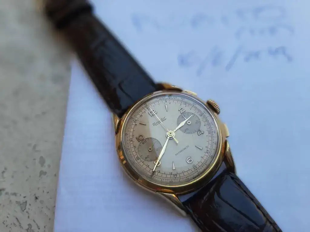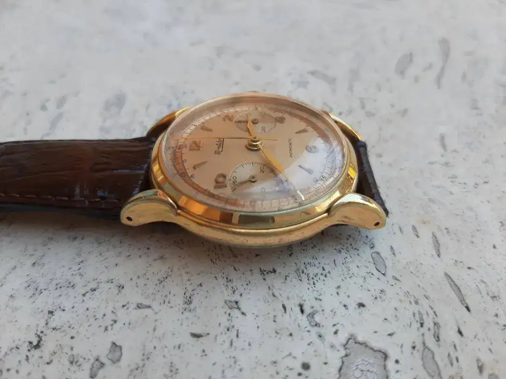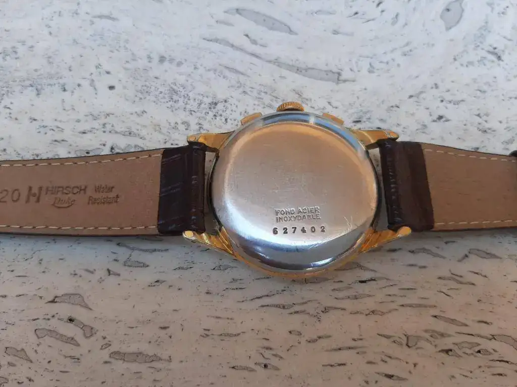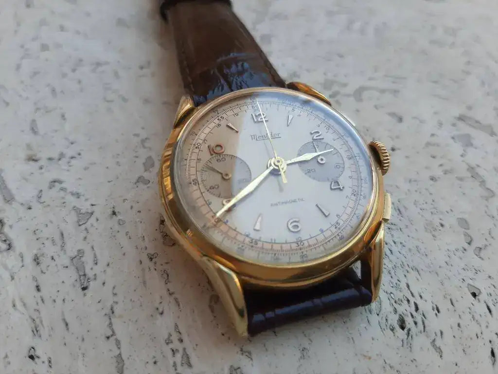 Saco este hermoso cronógrafo suizo vintage de los años 50 de la marca MONTDOR en excelente estado de conservación, equipado con calibre manual Landeron 48, robusto y fiable, funcionando correctamente en todas sus funciones. Tanto la caja con asas decoradas como la preciosa esfera están en excelente estado, obviamente sin descartar alguna microseñal de su carácter vintage.