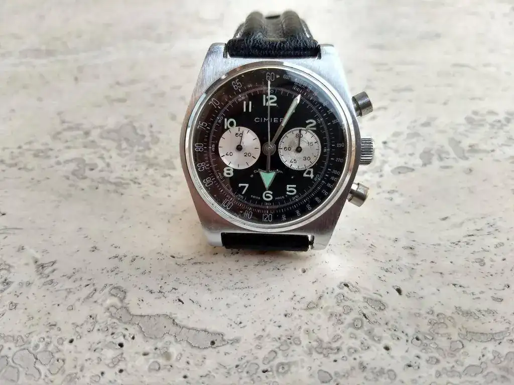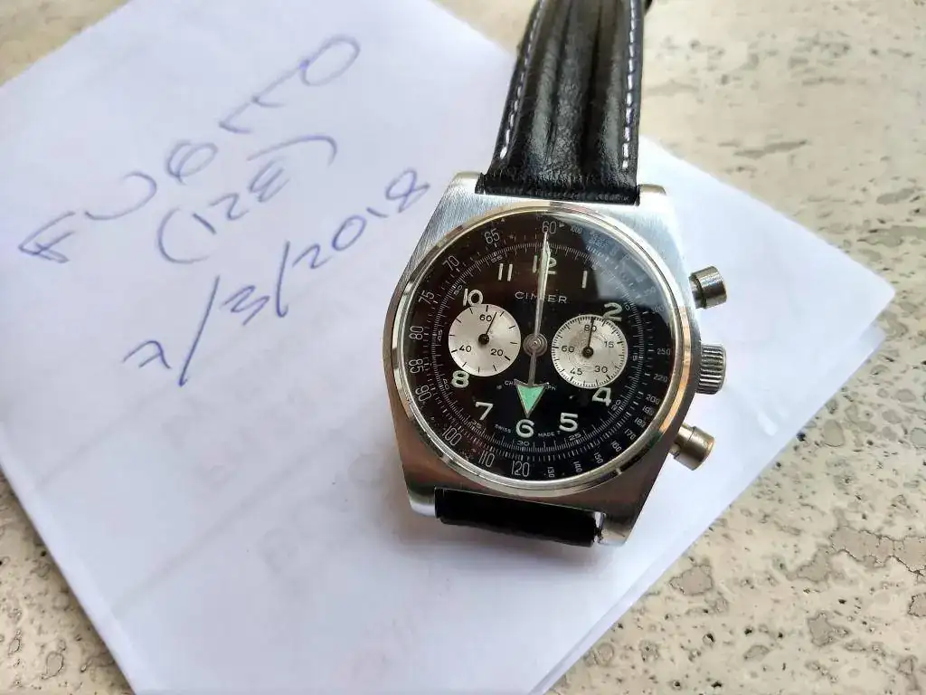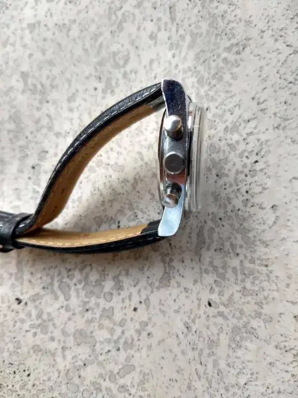 Saco a la venta este crono suizo de los 70 bien conservado, por supuesto sin descartar alguna marca de uso. La caja conserva el cepillado original frontal, brillante en los laterales. Funcionamiento correcto. A destacar su vistosa esfera negra con subesferas plata y su aguja horaria de flecha, tipo Omega Ranchero. El lume aún brilla.