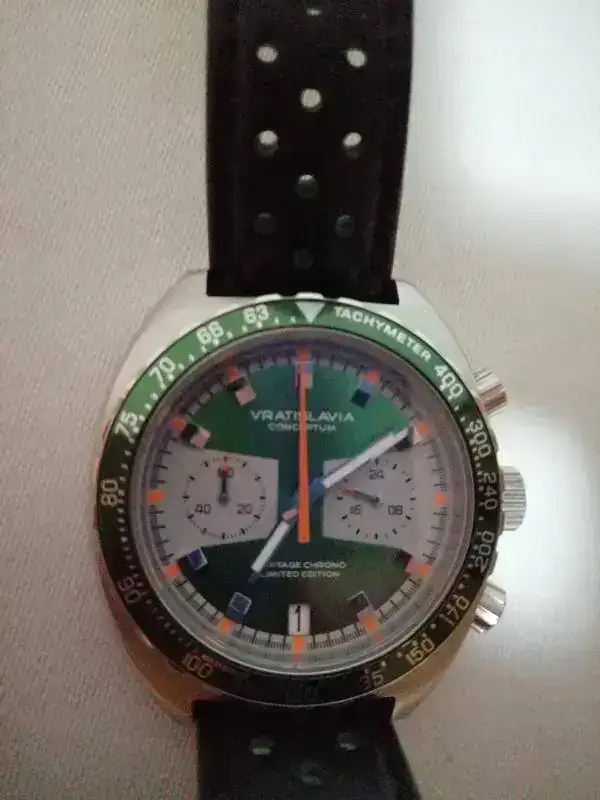 Por no usar, vendo crono de aspecto vintage de la marca polaca Vratislavia Conceptum, modelo Heritage Crono series 2, (lleva maquinaria Mecaquartz de Seiko, un híbrido que funciona de manera mecánica en el crono)