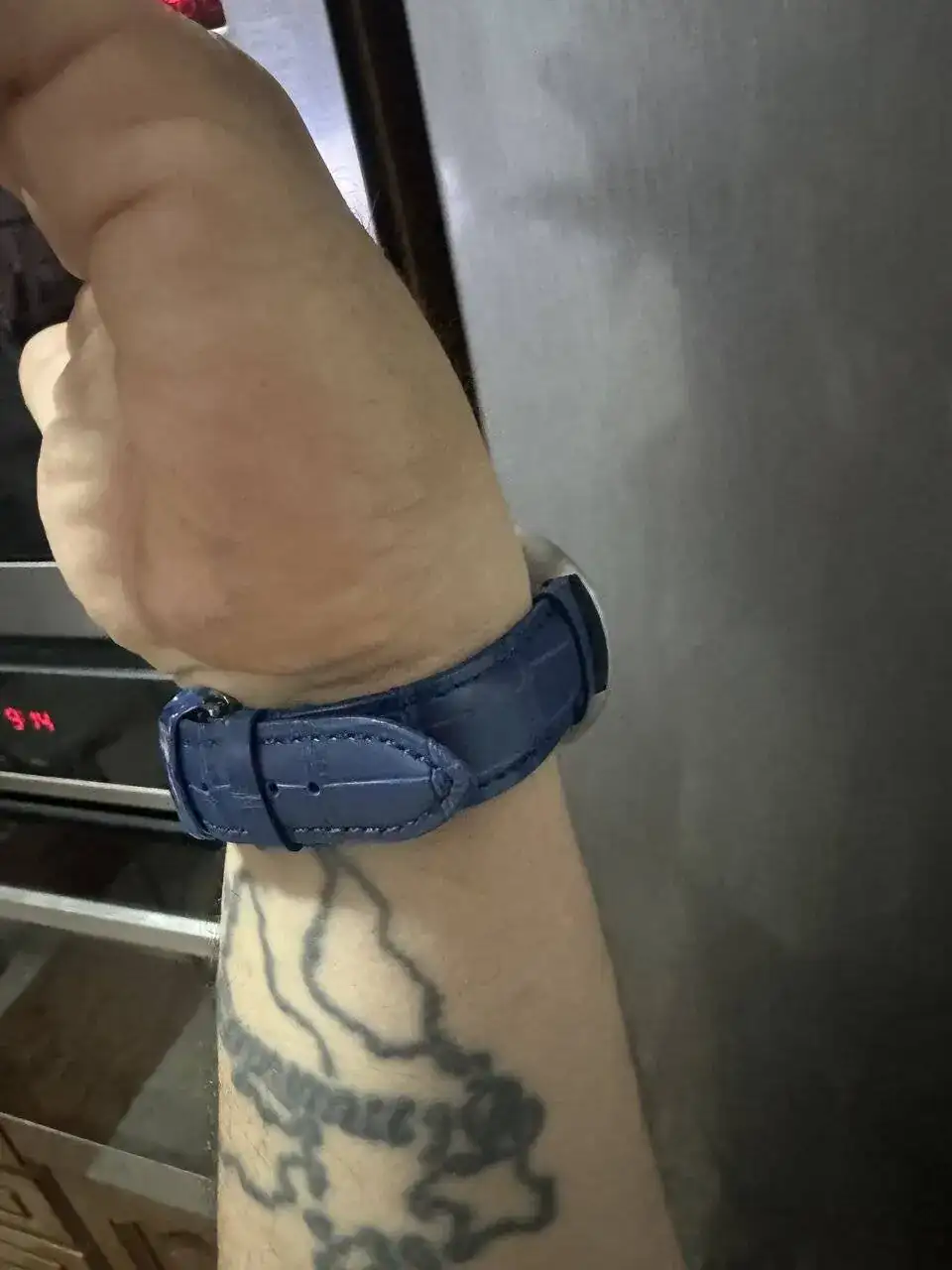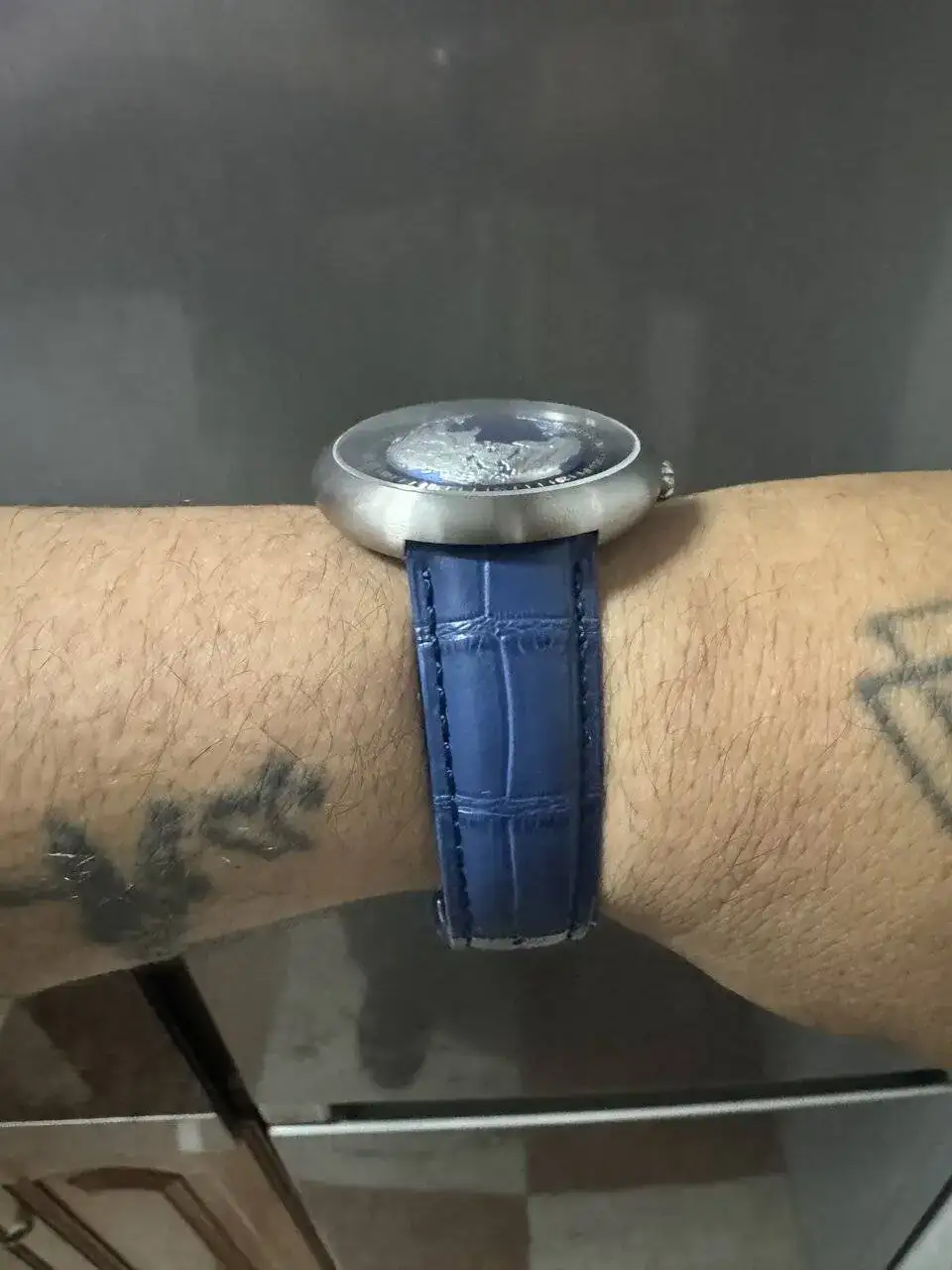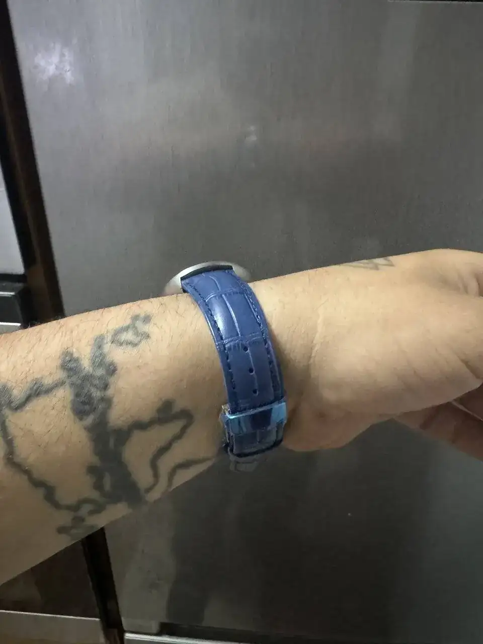 cuál de las dos correas creeies que le queda mejor a mi planeta azul . Correa de cuero lisa Azul marino oscuro o por el contrario correa de cuero simulando la piel de cocodrilo en azul marino un poco más clara .