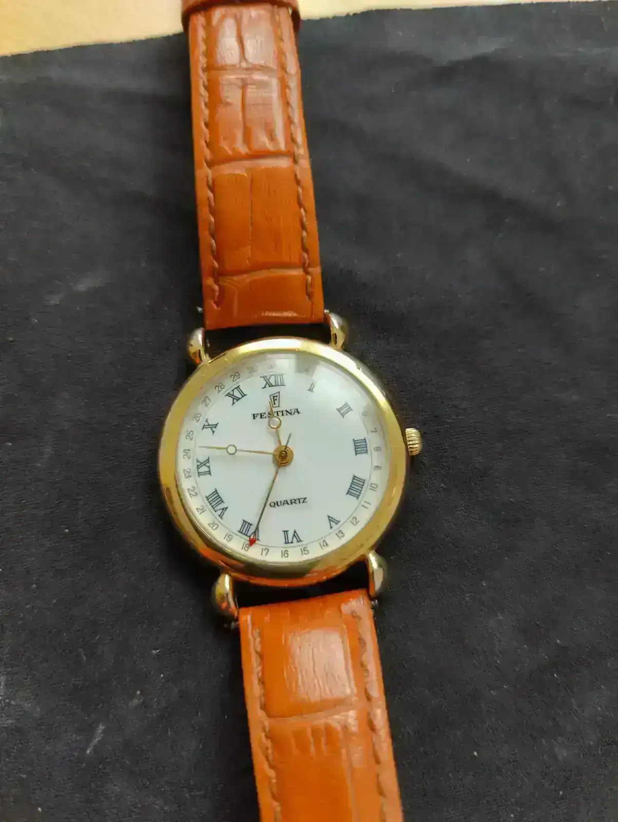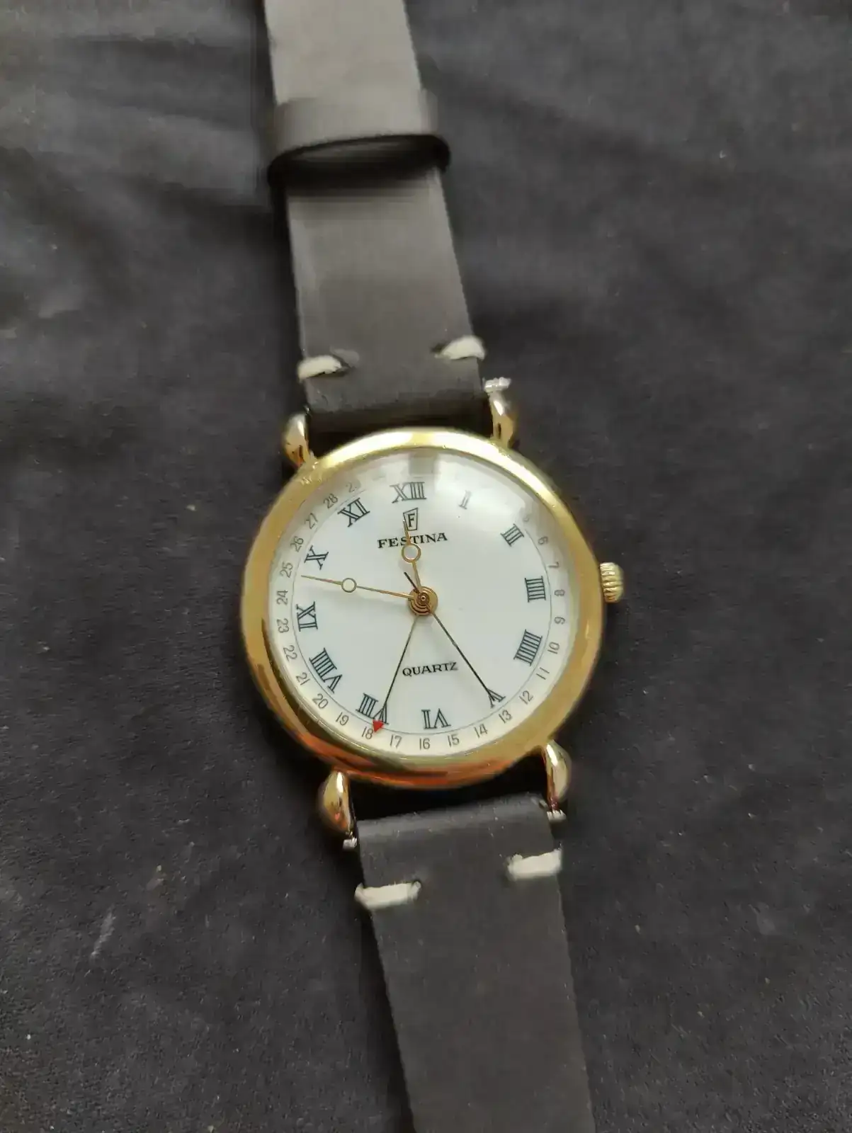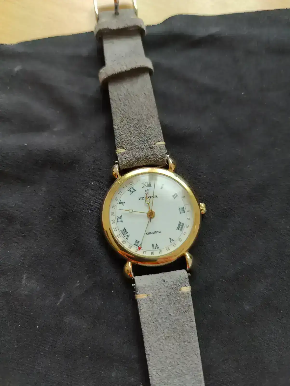 Os cuento: aquí tengo un Pointer Date con sus años a la espalda. Podría ser un Oris, jeje, pero en realidad es un humilde Festina de cuarzo, al que le tengo mucho más cariño por sus intangibles. Era de mi padre. Mi madre lo tenía guardado y, sabiendo que me gustan todo tipo de relojes 😅, me lo dio el otro día “por si me apetecía usarlo”.