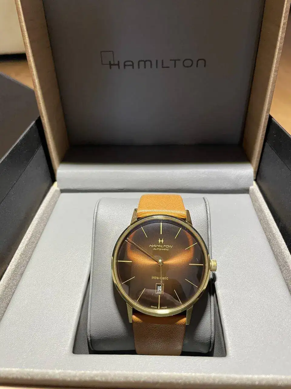 El Hamilton lo tengo en oro amarillo, y en plata con el dial fumé por marca y tener los tres me voy por el Hamilton. 580 e.38mm