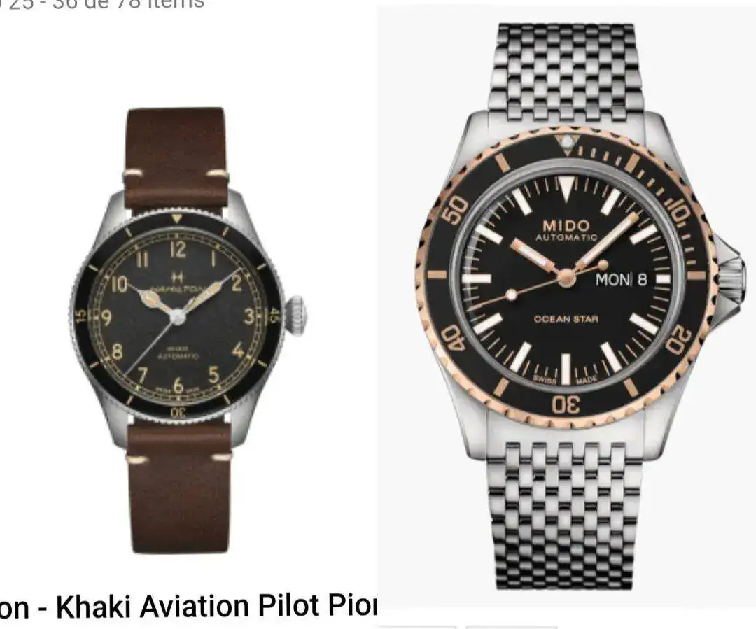 Parece mas conocido el Hamilton, pero el Mido que tambien es suizo, y visto la foto yo lo eligiria pues me gusta mas su estetica y de calidad yo tengo uno y cumple bien