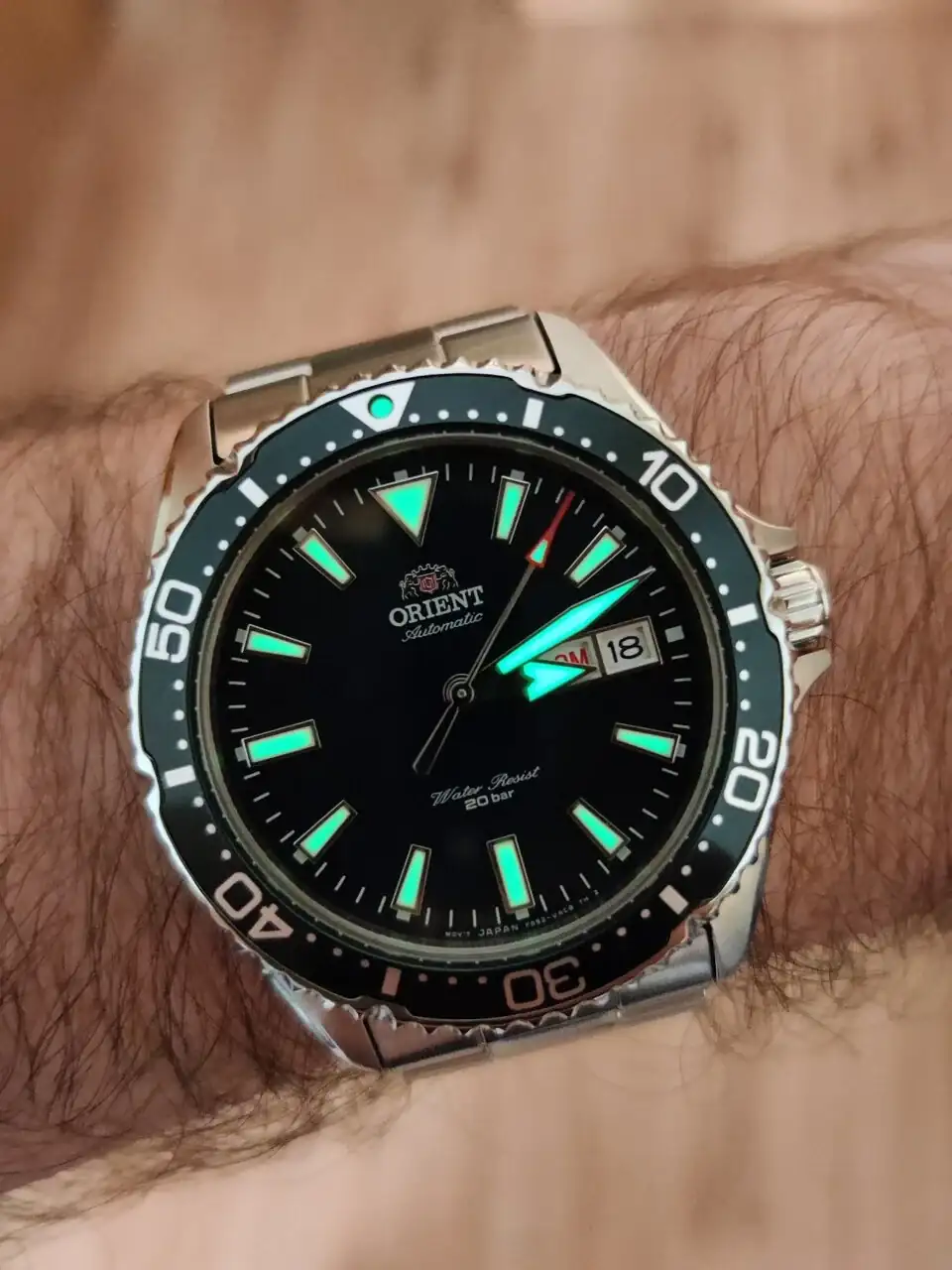 Joder, como el de mi padre que rescate la semana pasadaMuy buenas, tengo un Orient Kamasu Verde cuasi negro, que me encanta a excepción del armis que no le hace justicia.