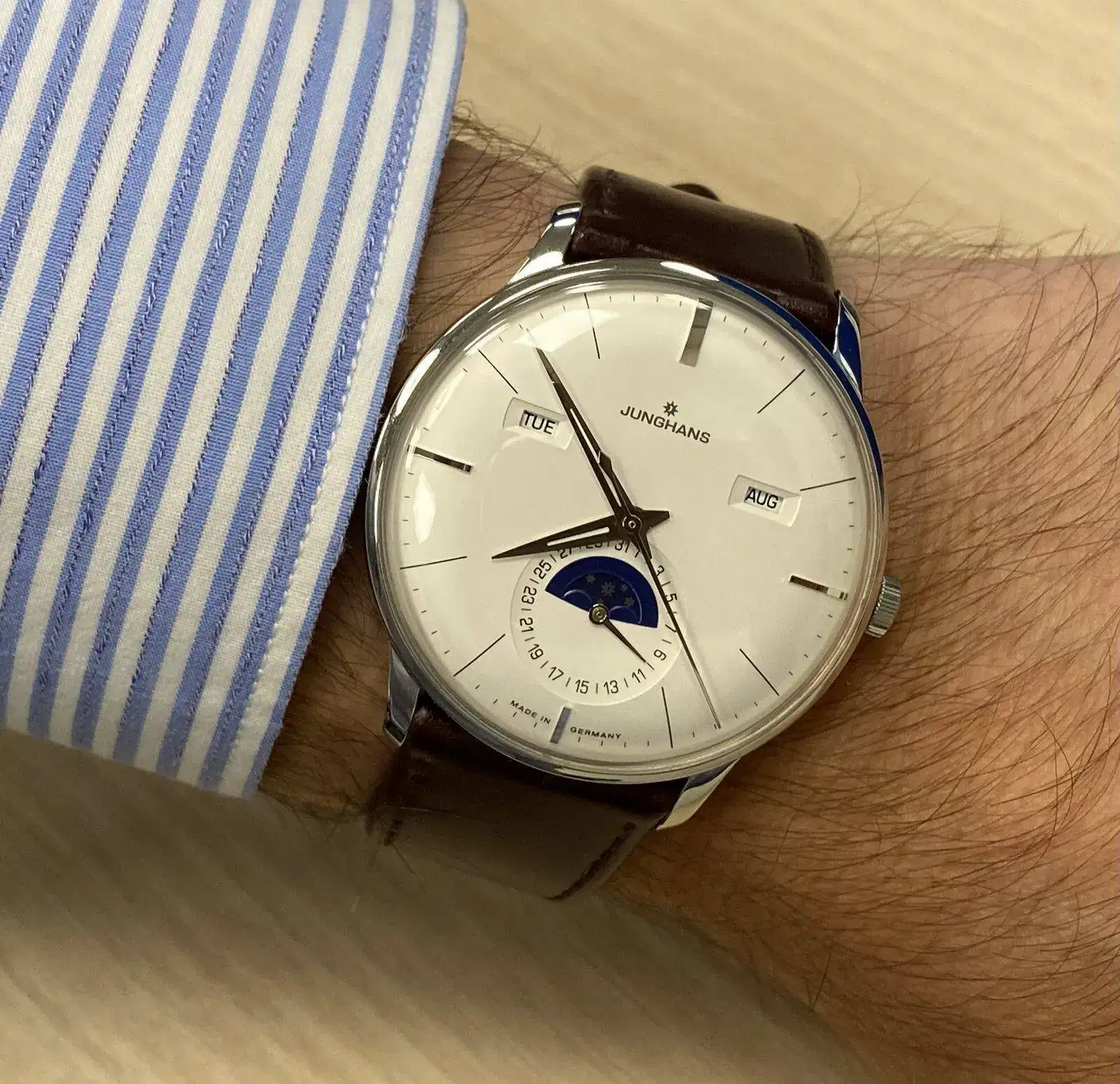 En mi caso es este Eterna Soleure Moonphase que, debido a su calibre ETA 7751 modificado por Eterna, ofrece las siguientes "complicaciones":