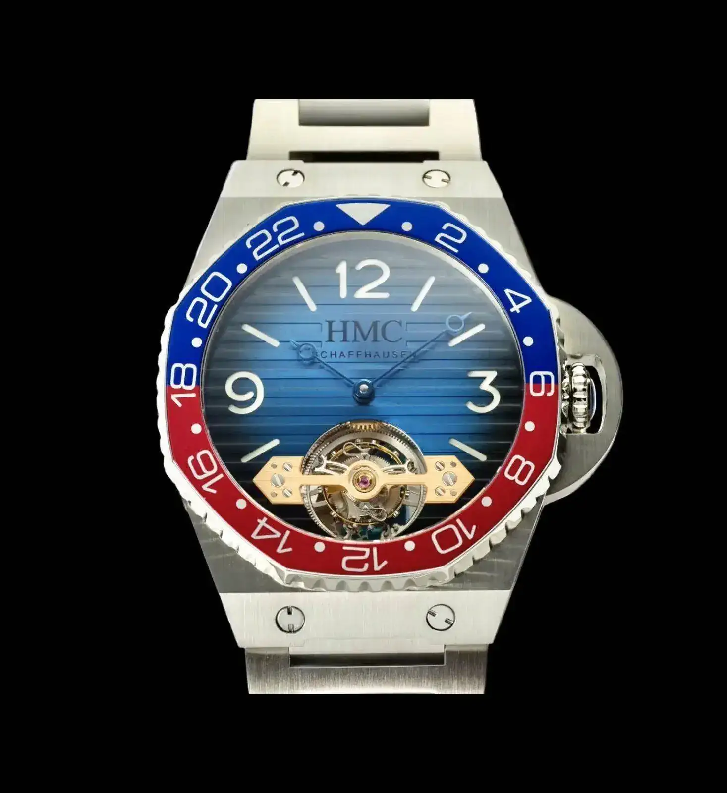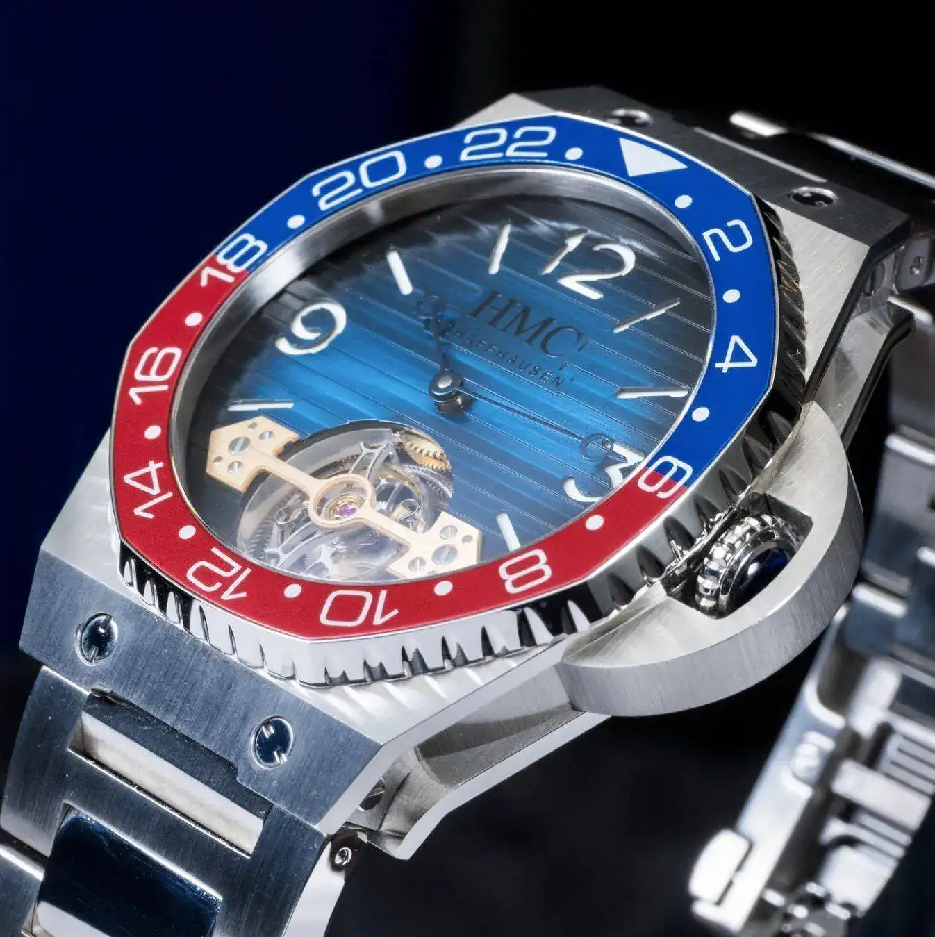 Es un H. Moser & Cie modelo Swiss Icons. Una pieza única que hicieron para el SIHH y que después se subastó.Qué magnífico ejemplo de refrito infumable. Un ejercicio de valentía y desvergüenza relojeril que pasará a los anales de la escatología universal.Es difícil... Ya lo puse por aquí una vez, pero eso va cambiando...