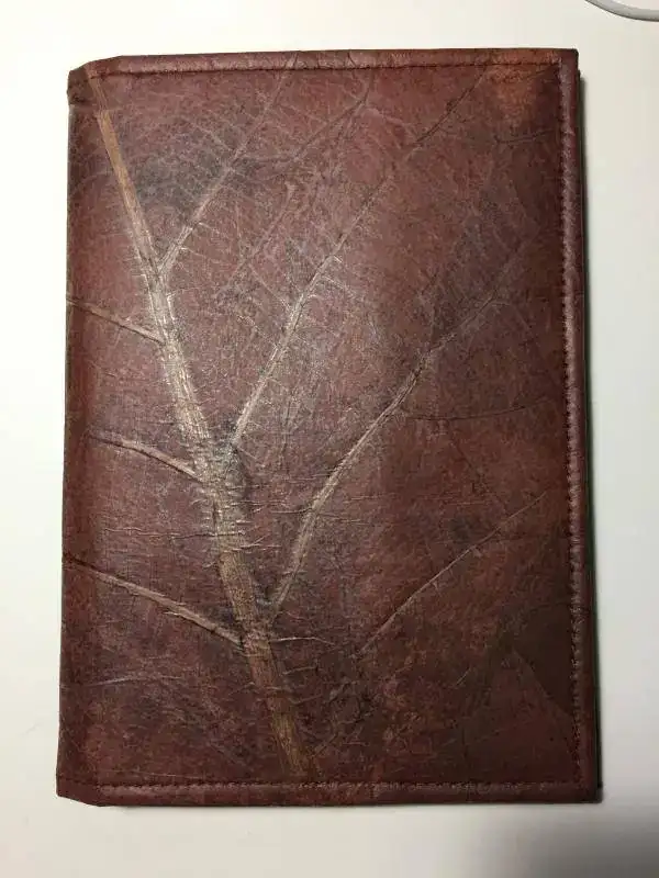 Las tapas del cuadernos son de hoja de Teca y el papel es de algodón...no apto para estilográficas... Pero muy bonito y muy, muy ligero.