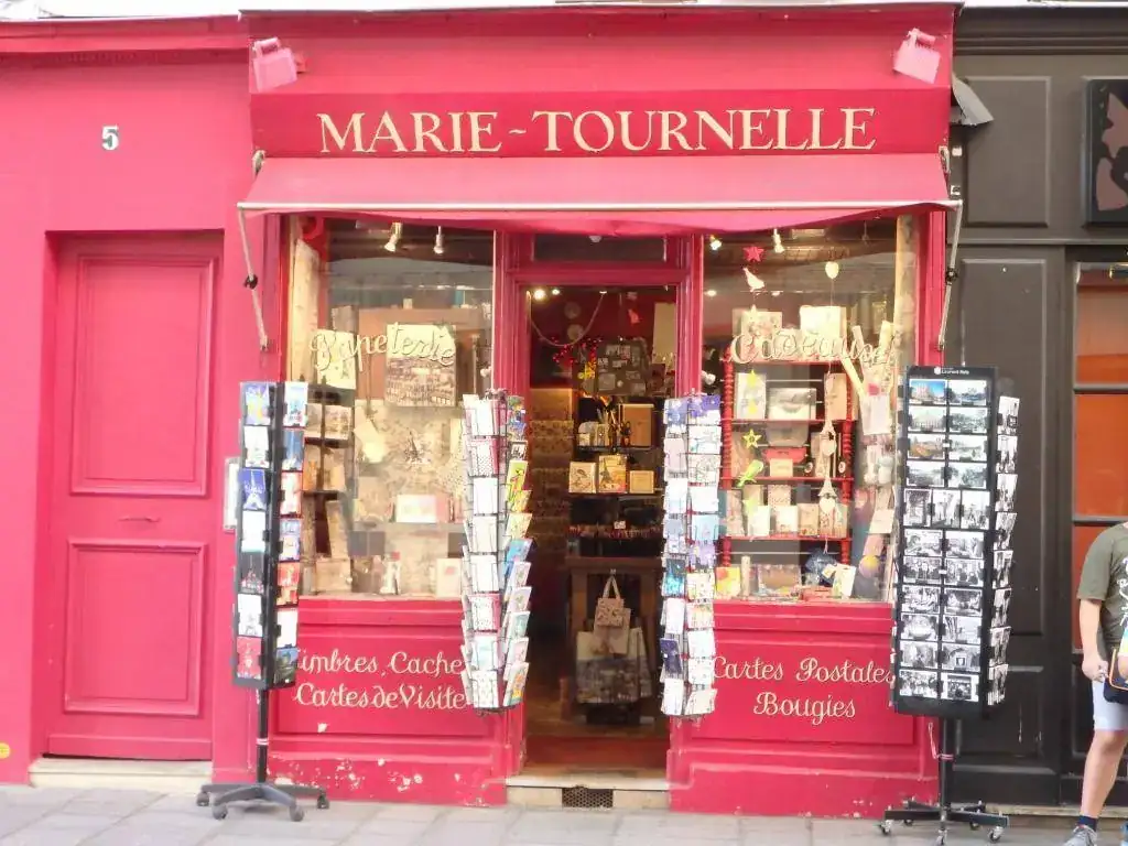 En primer lugar, Marie Tournelle, en el número 5 de la rue de Deux Ponts, en el corazón de l' Île de Saint-Louis, una coqueta y pequeña papelería repleta de cuadernos, papeles, sellos, tarjetas, ¡y tinta Herbin! ... La dueña es simpatiquísima y de una amabilidad y una paciencia a prueba de pesados como yo, porque la interrogué sin piedad sobre todo lo que tenía en los estantes de su establecimiento. Le hice una compra bastante generosa y ella me correspondió regalándome unos cuadernos de bolsillo de papel Lalo con un estuche de polipiel en el que se llevan ocultos. Tienen facebook.