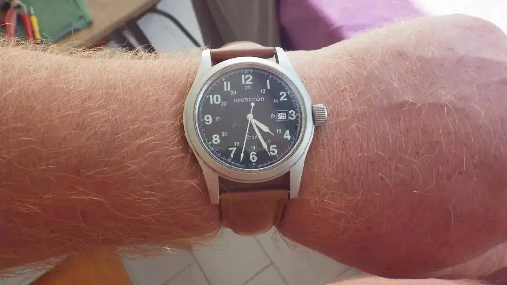 Me gustan las dos. Para un reloj negro de aviador diría que marrón, pero en este caso la negra me parece que queda perfecta con ese pespunte. Elijo la negra.