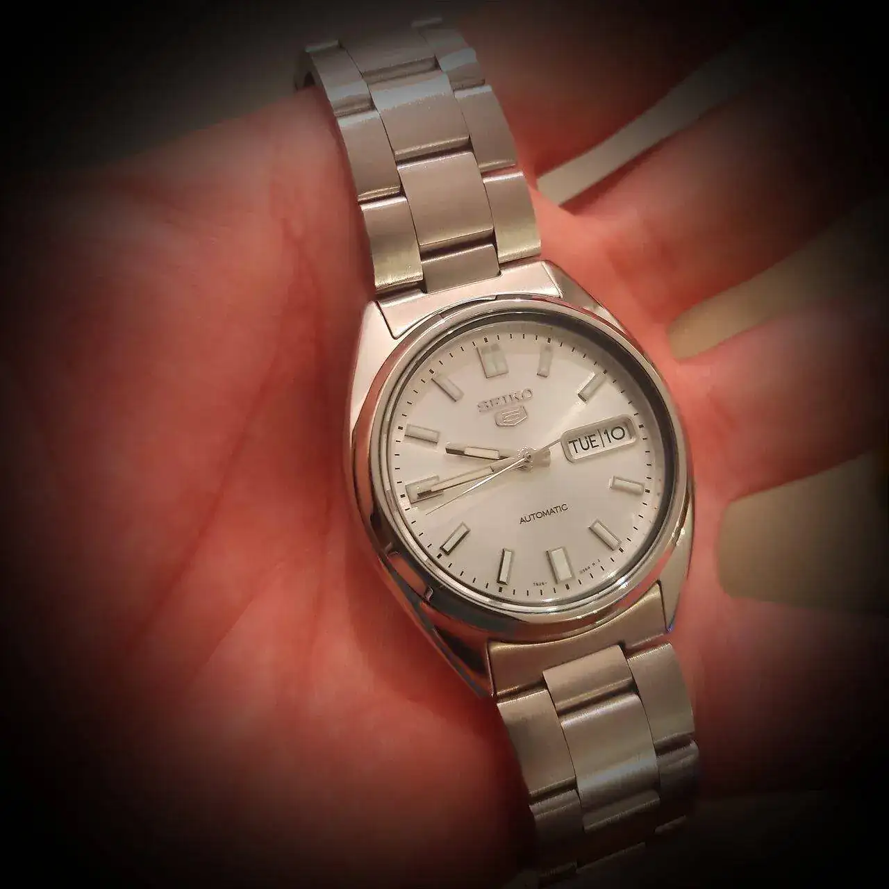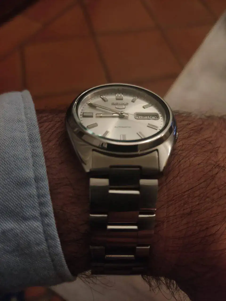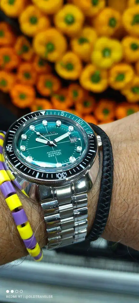 Su brazalete me parece de muy buena calidad, eslabones finales macizos, muy comodo y llevadero, pero no podia con tanto brillo,(especialmente por las huellas dejadas al manipularlo, tenia que estarlo limpiando constantemente) no me lo ponia casi, precisamente por ese brillo tan cantoso del brazalete, pero probando correas, di con una de caucho fluorado de Ali.