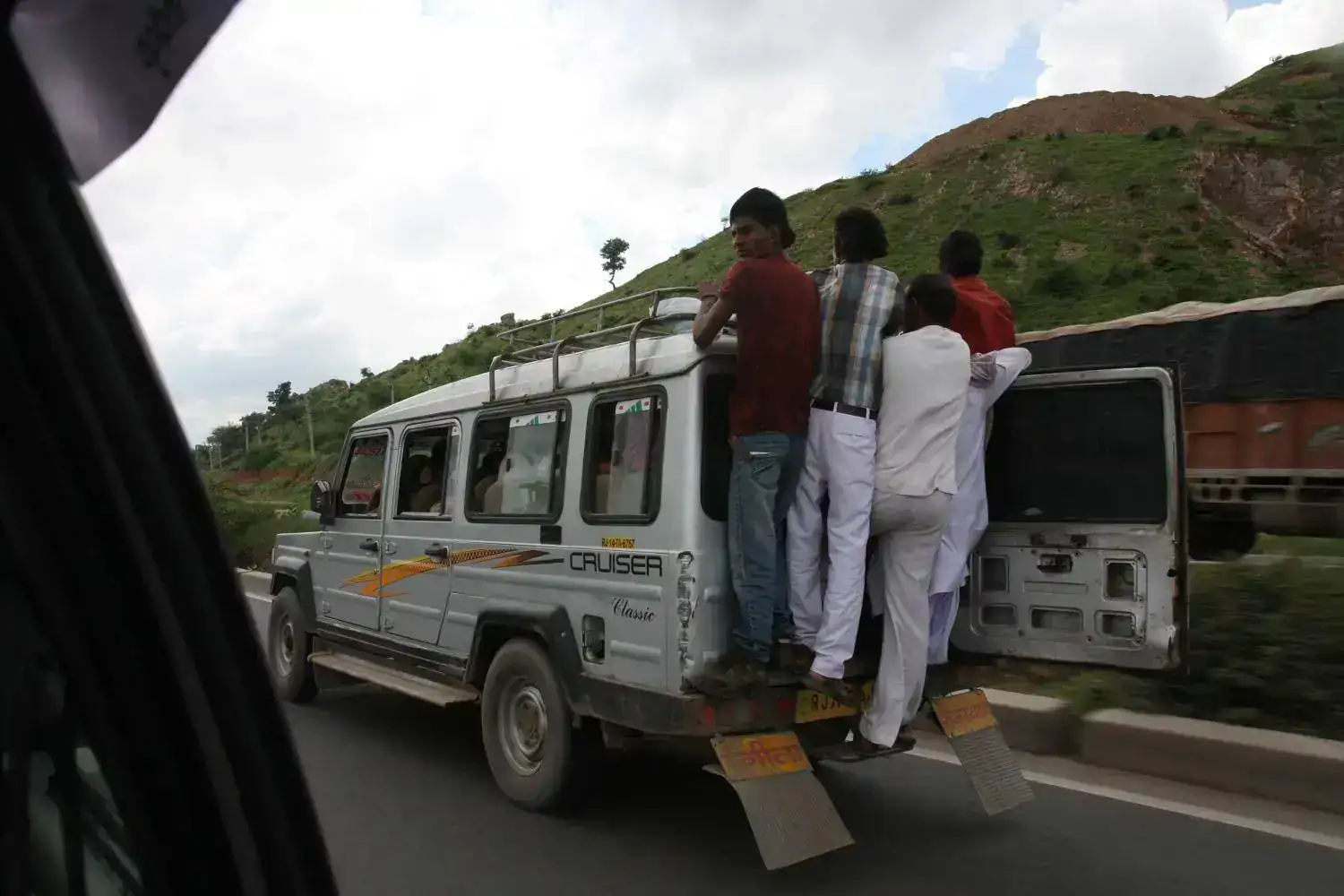 Desplazarte por la India, es en si, una aventura. He de admitir que los primeros días íbamos completamente acojonados. Tras varios intentos fallidos de adelantar, no importa si por la izquierda o la derecha, claxon del de adelante y el de atrás, esquivos de vacas , y la vision de esos señores a 100 por hora cogidos de salientes del coche, uno acaba por cogerle el gusto.