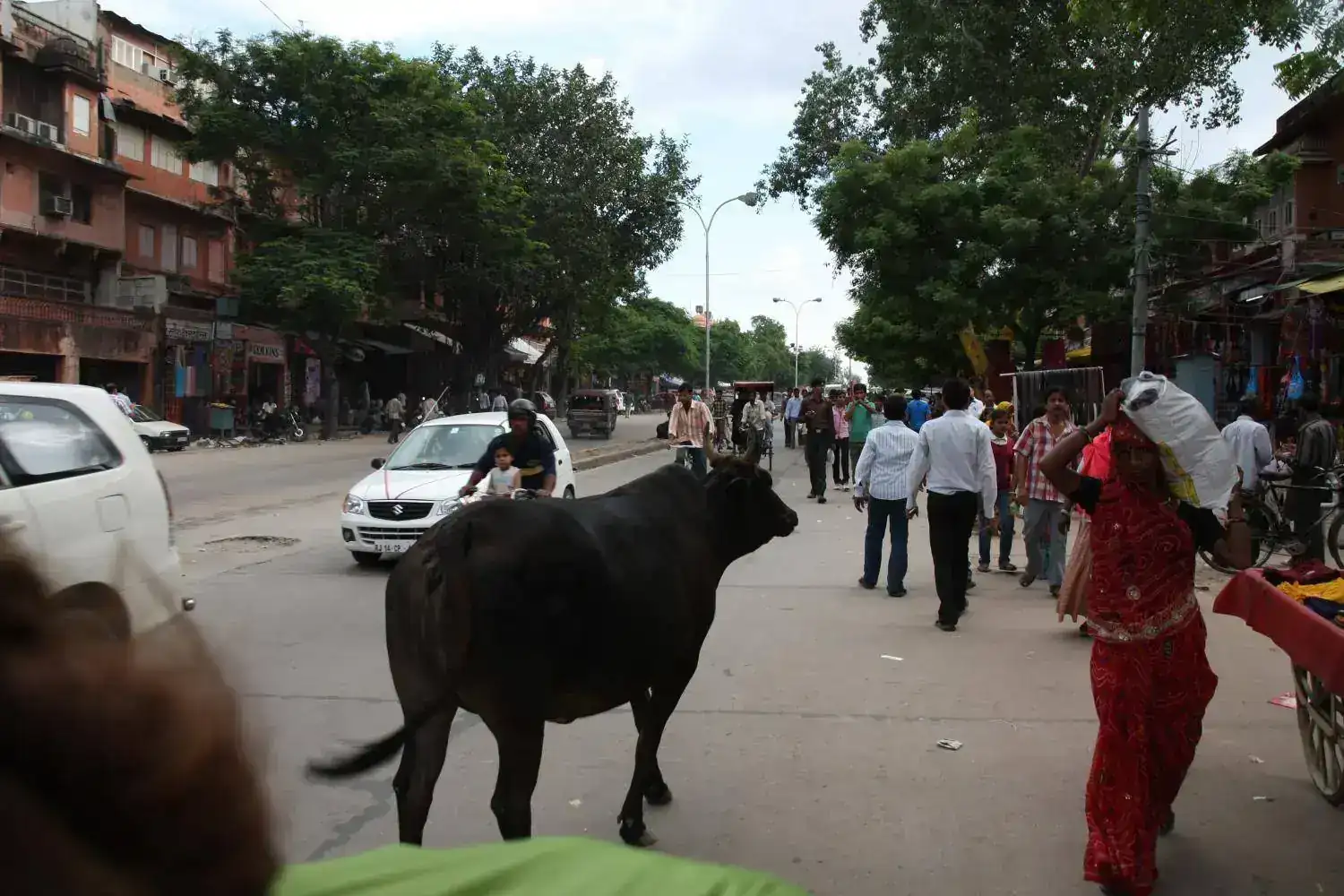 Como sabeis las vacas son Sagradas en la India. Así que vagan libremente por las ciudades. Y por supuesto van dejando sus minas anti personas por doquier. Sin embargo, lo que la gente no sabe, es que también hay mucho cerdo suelto. Le pregunte al guía que si no le parecía raro que hubiera cerdos en mercados con comida. Le extrañó la pregunta , y me dijo que los cerdos son "city cleaners" (limpiadores de la ciudad). Quizás eso explica y exculpa muchas cosas. Que podemos pedir a una sociedad que tiene a los cerdos como aladid de la limpieza.