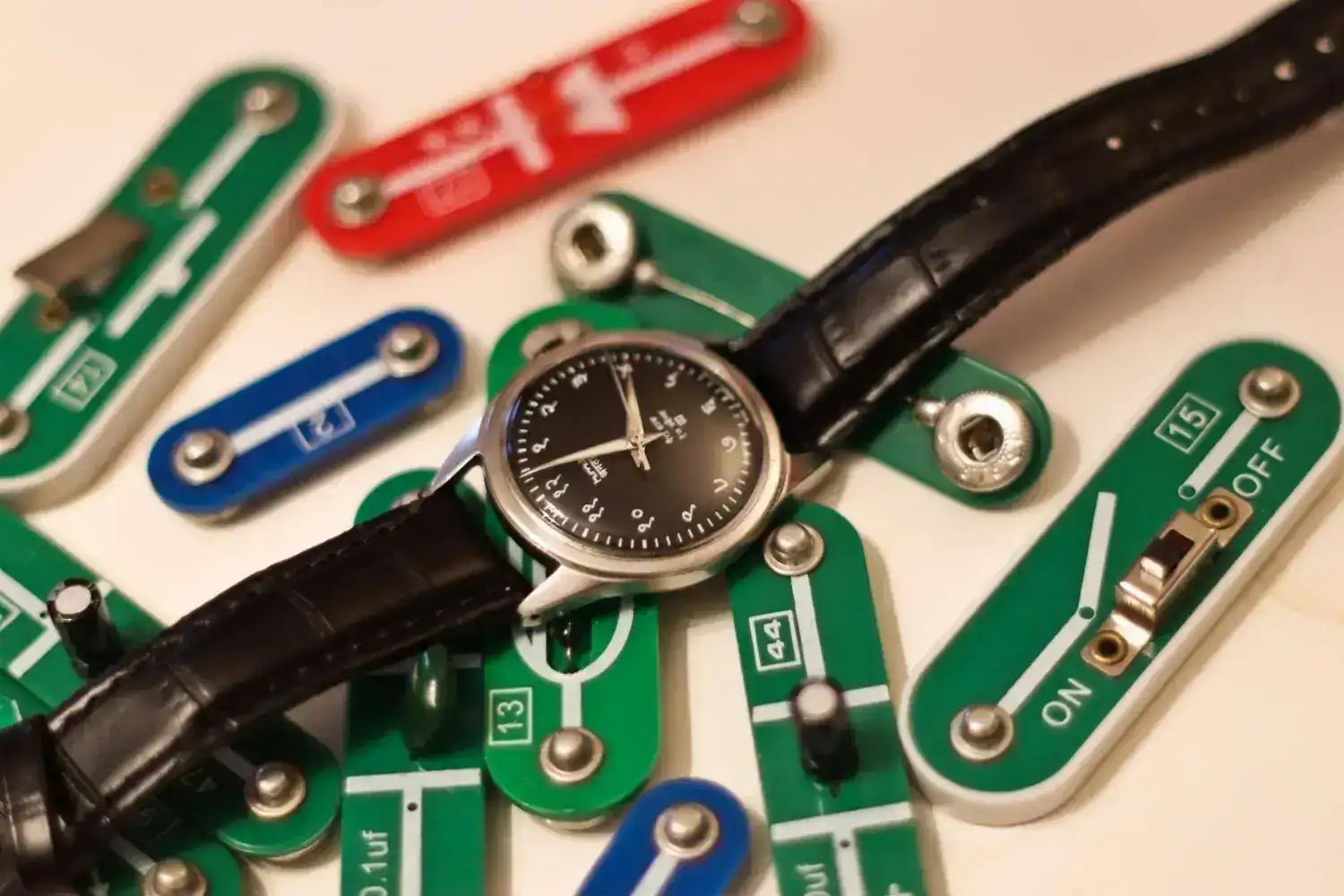 Que puedo decir de el reloj? Me viene un poco pequeño, pero es MUY Bonito. Hace una ruidera muy sexy. Con una correa de cuero barata que seguro ha sentido el olor del curry cerca